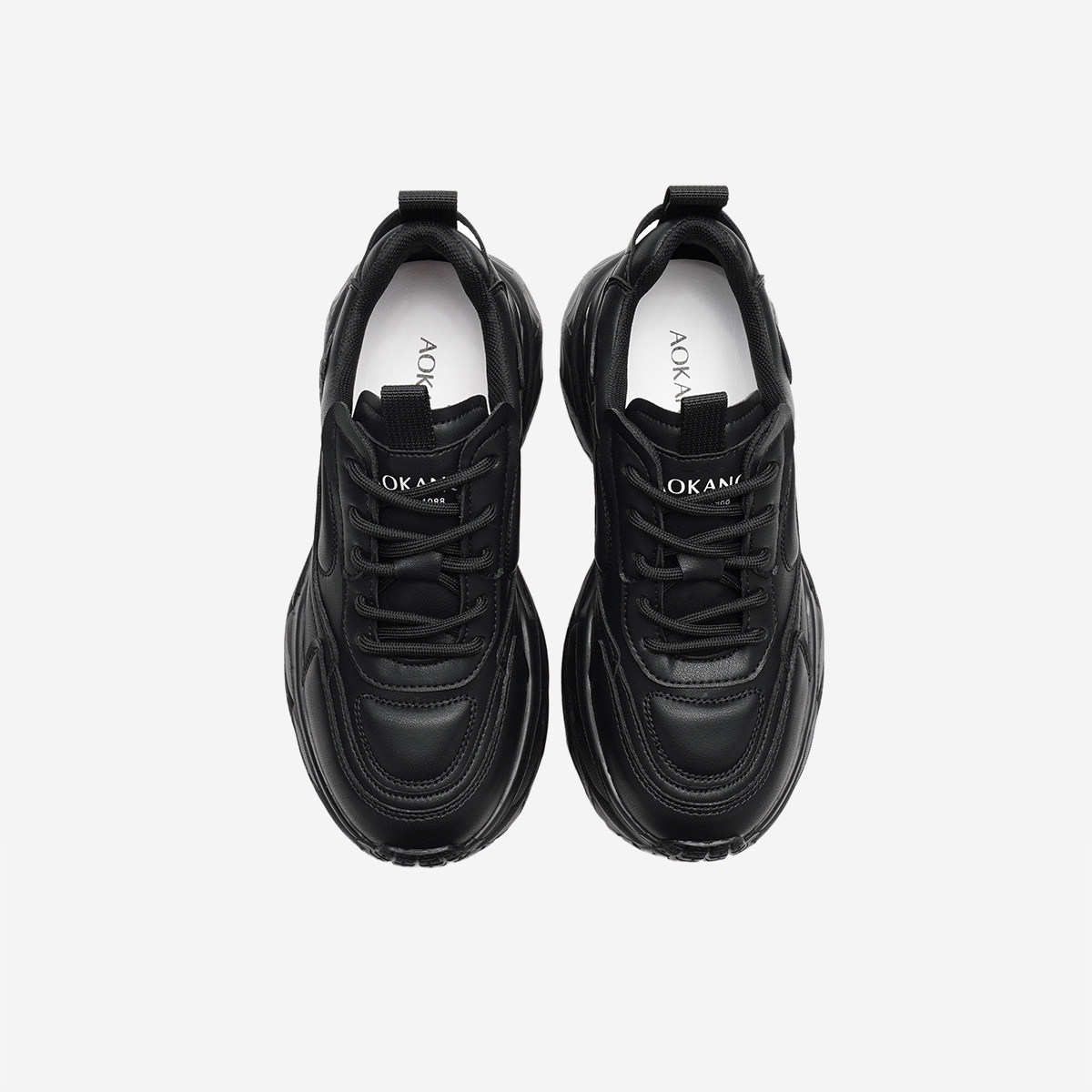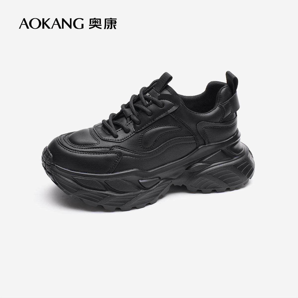 奥康女鞋 春秋松糕底显腿长黑色系带休闲老爹鞋门店发货