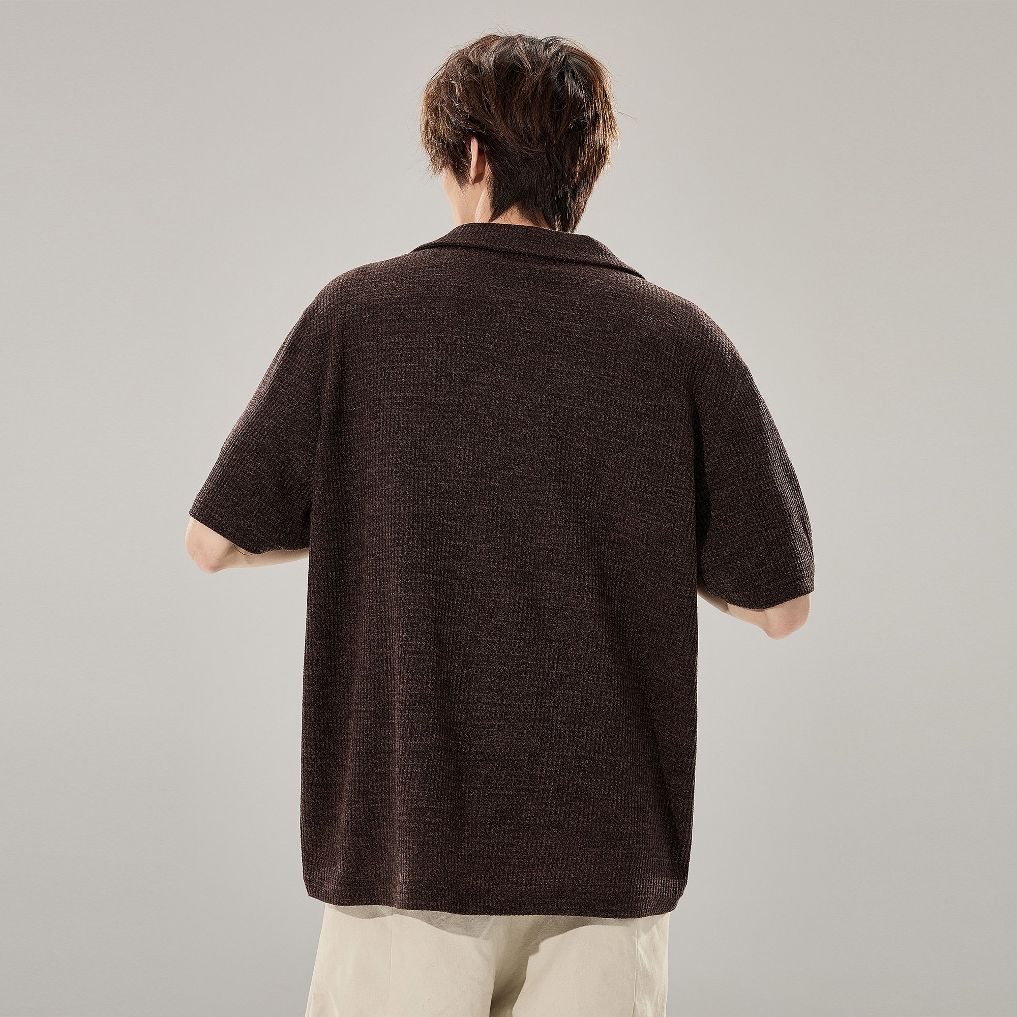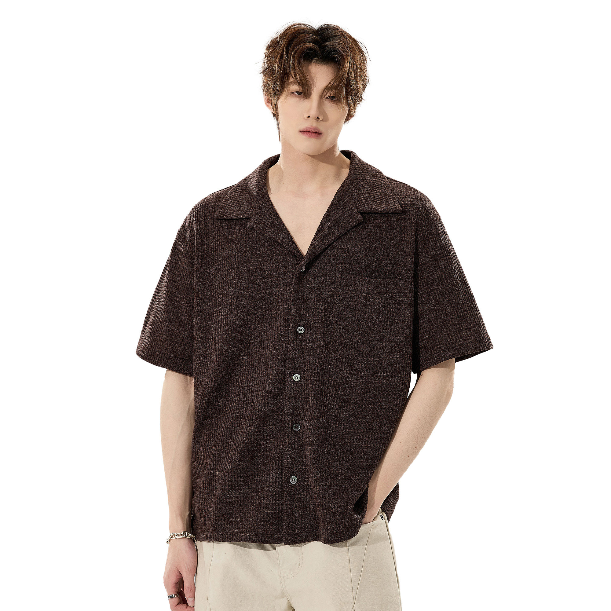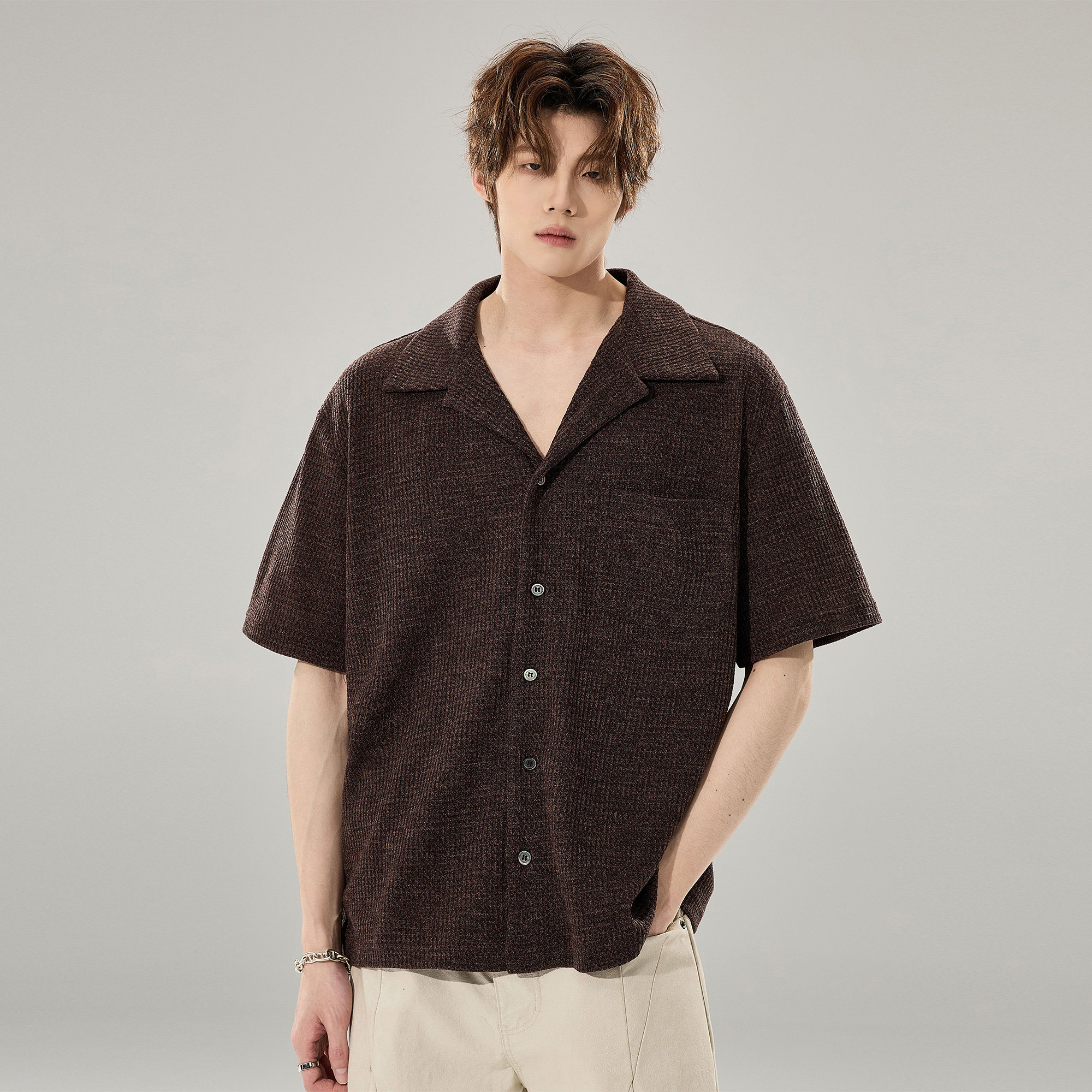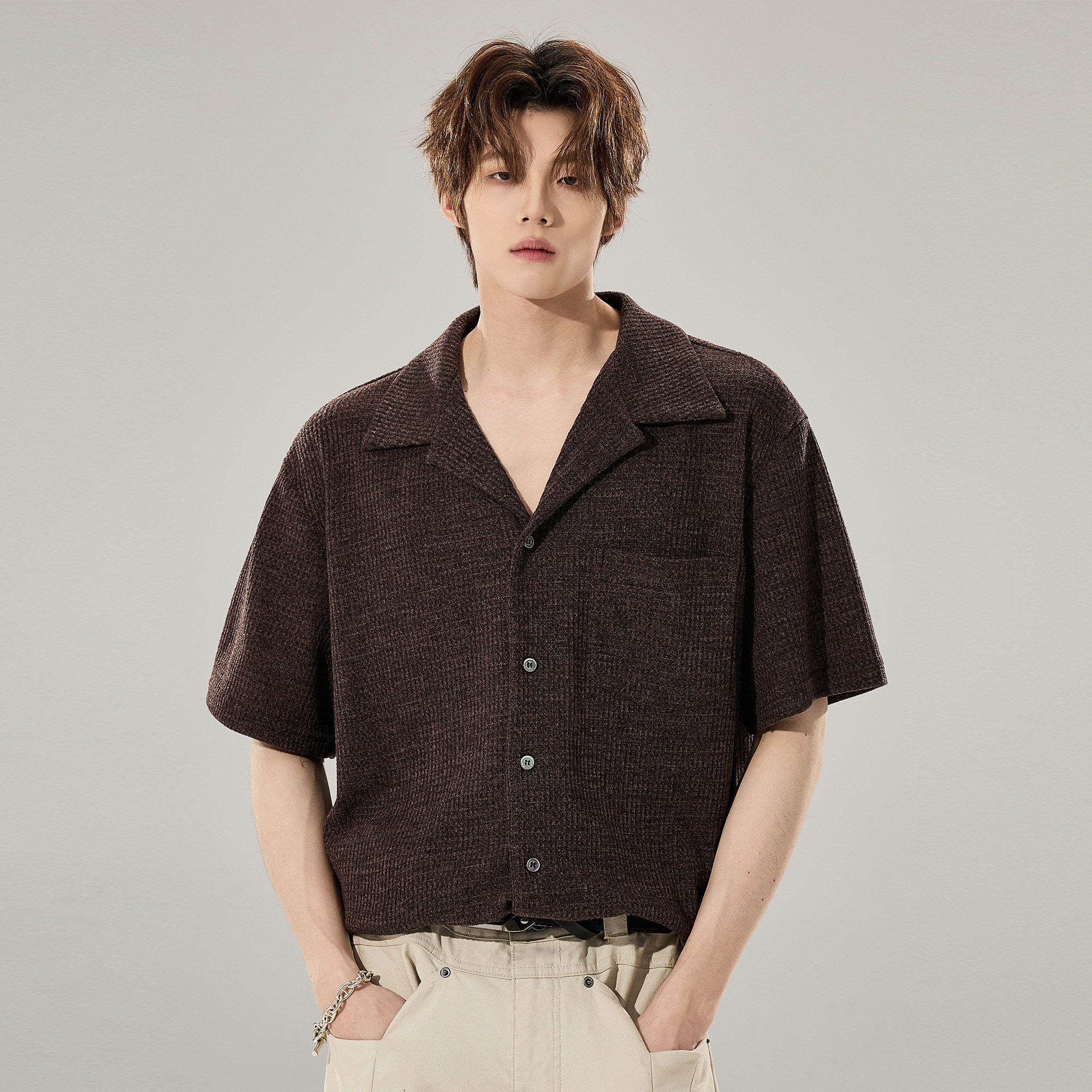 ALLIN 古巴领肌理感短袖衬衫男夏季老钱风休闲半袖宽松高级感衬衣