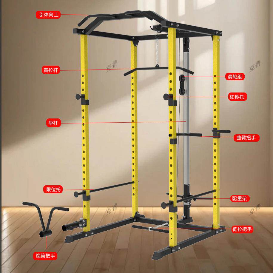 跨境深蹲架卧推架多功能高低拉训练器杠铃架家用引体向上训练器