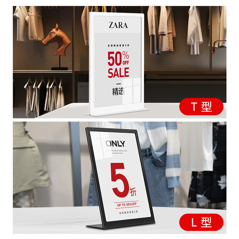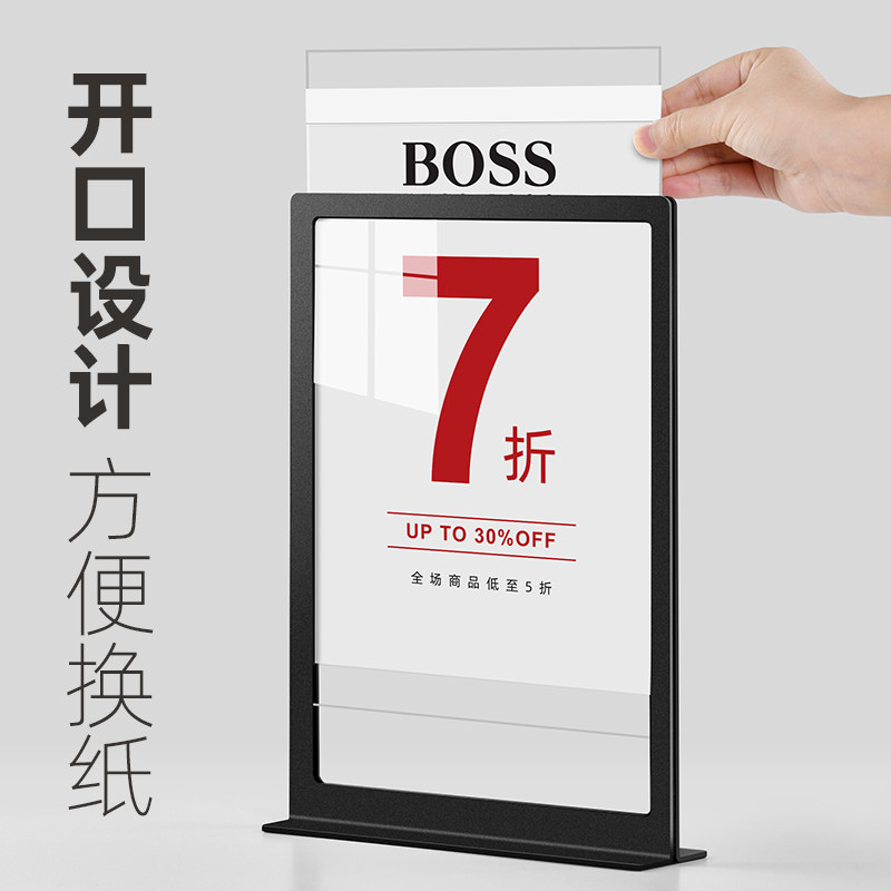 a4台卡展示牌立牌亚克力桌牌金属定制桌面广告牌高档价目表摆台签pop海报展示架服装店价格牌a3特价牌水牌