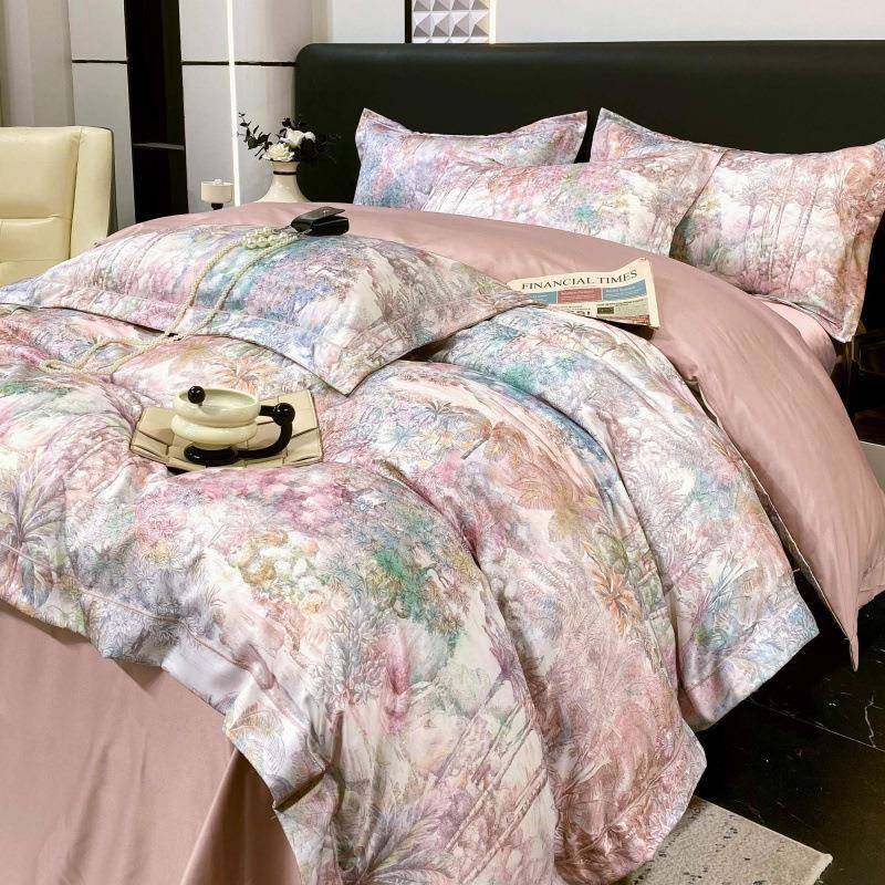 真丝床上四件套100支水洗天丝类冰丝床单夏季凉感被套滑床品