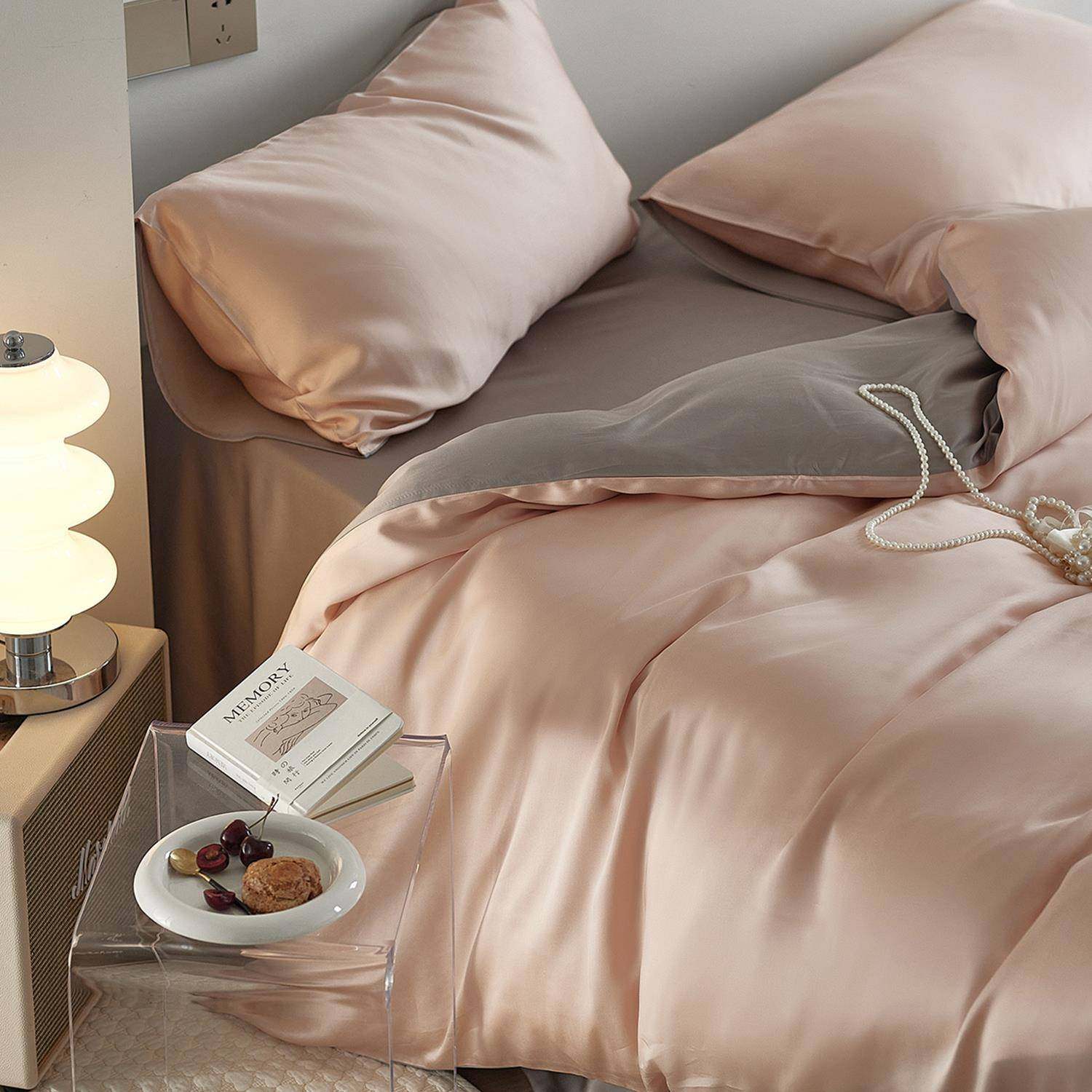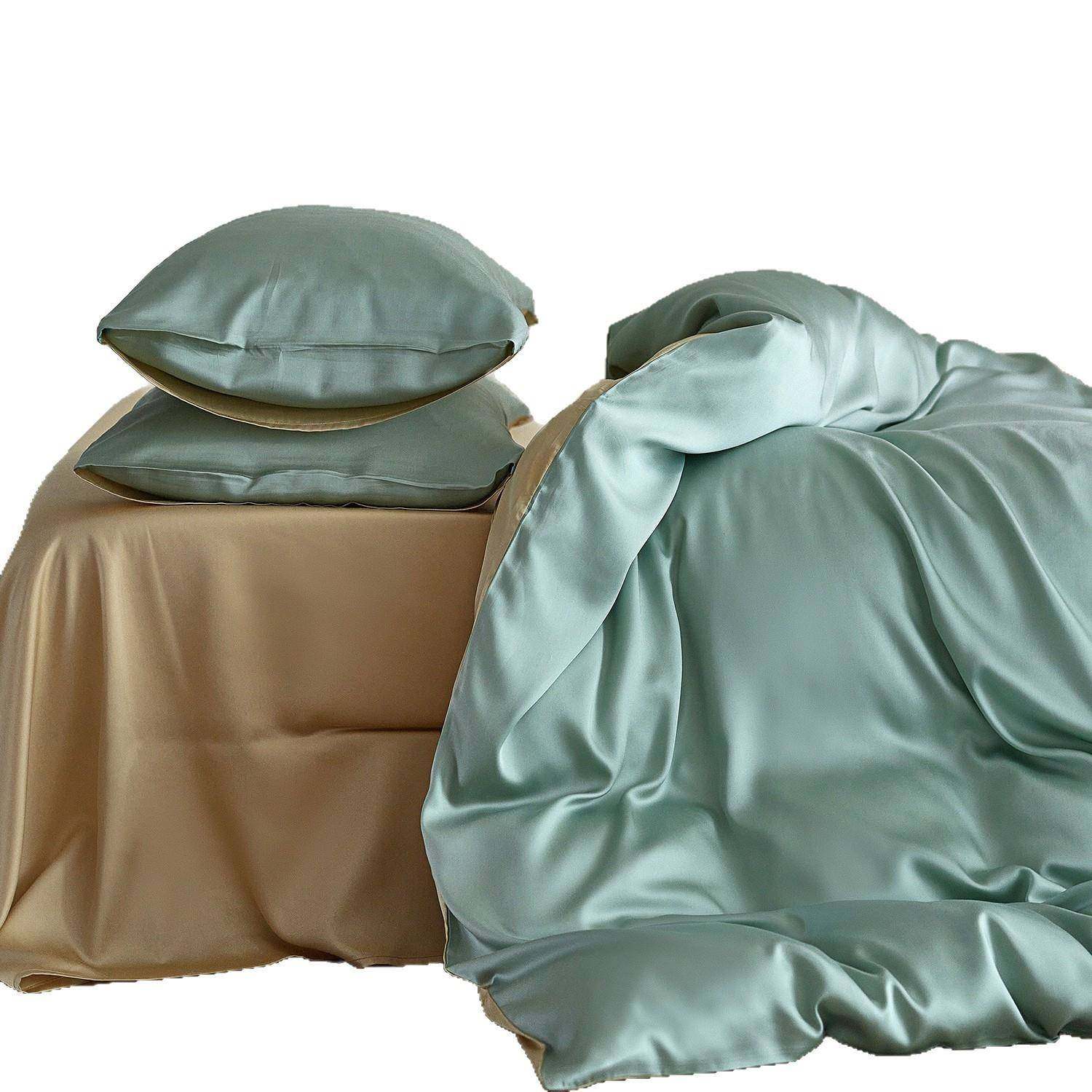 进口!凉感60支兰精天丝四件套纯色冰丝夏季裸睡床笠床单被套床品