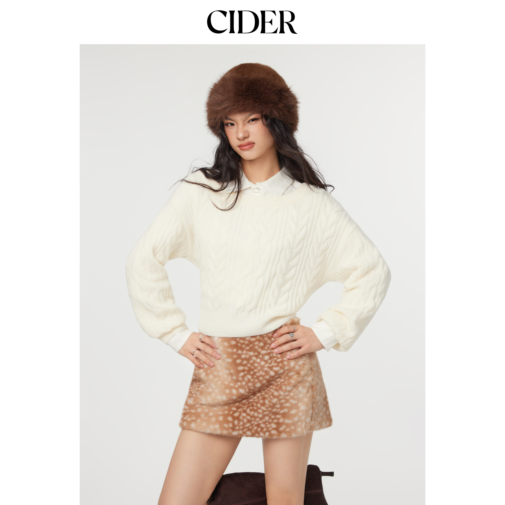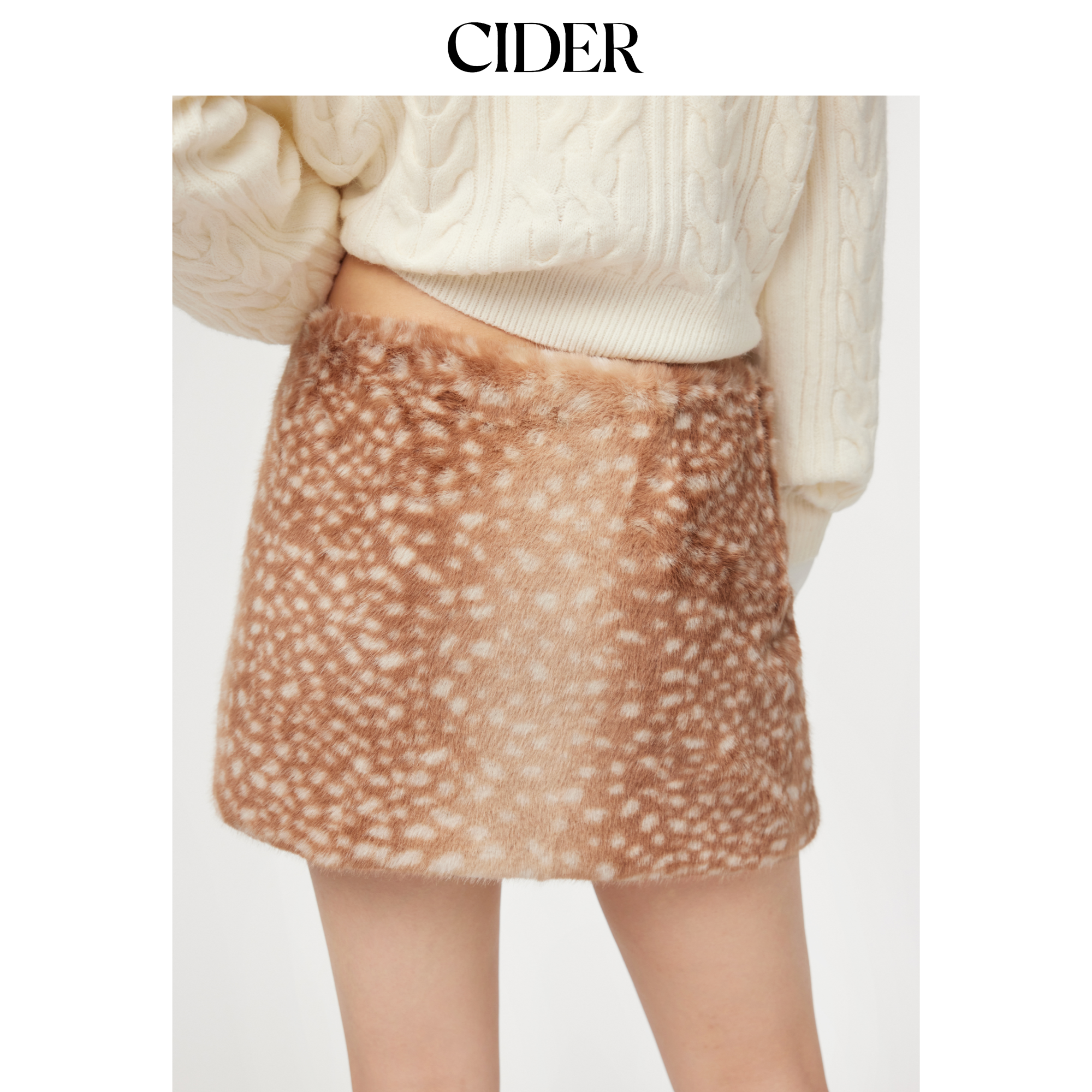 【明星同款】CIDER都市游牧风仿皮草辣妹风拉链A型短裙114842482