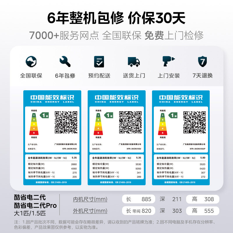 美的空调酷省电二代大1.5匹1匹一级能效变频冷暖家用挂机官方正品