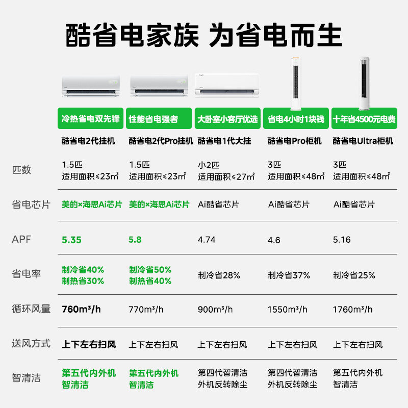 美的官方正品酷省电二代pro空调一级变频1.5匹2匹家用冷暖大挂机