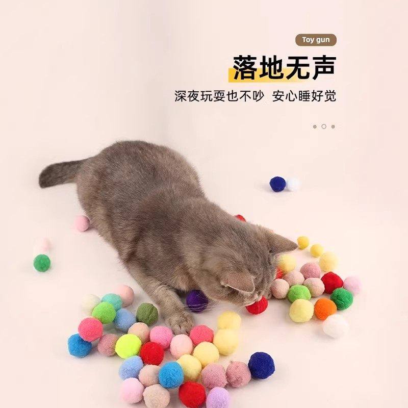 猫咪玩具毛球绒球发射枪自嗨解闷弹力无声静音球耐咬逗猫棒宠物球