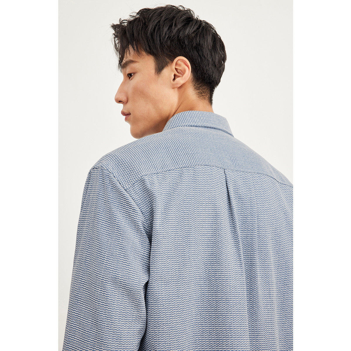 肌理提花长袖休闲衬衫 粗针编织感提花衬衫