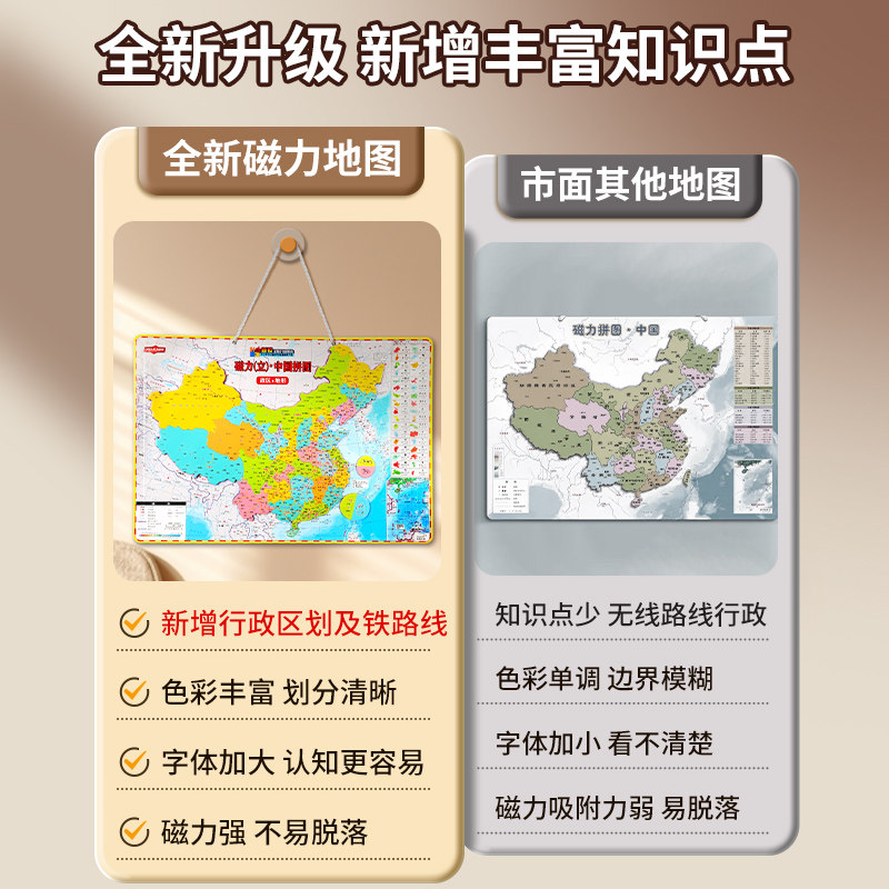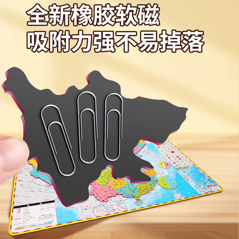 中国地图拼图磁性世界磁力加厚学生地理儿童初中磁吸地形新款新版