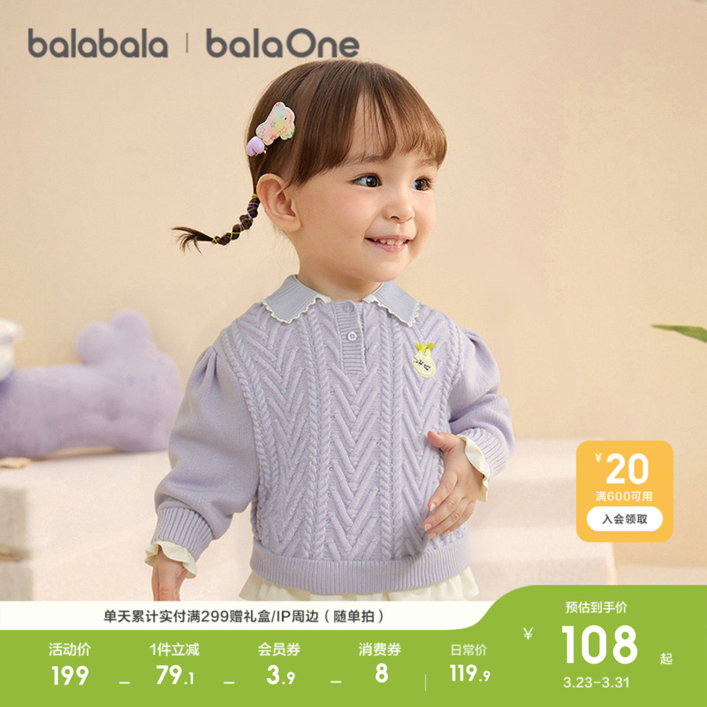 巴拉巴拉童装女童毛衣儿童2026新款秋冬装婴儿针织衫宝宝百搭上衣