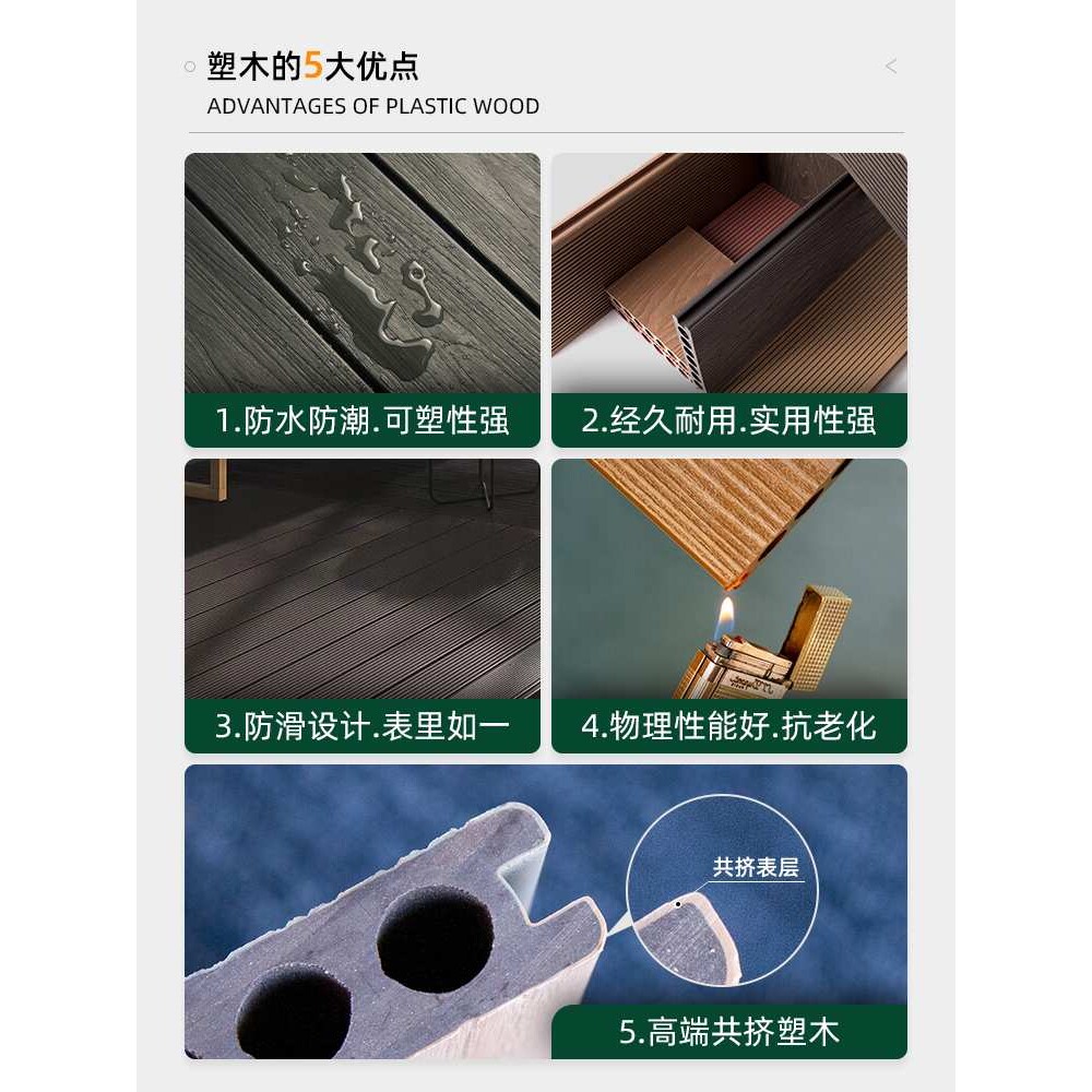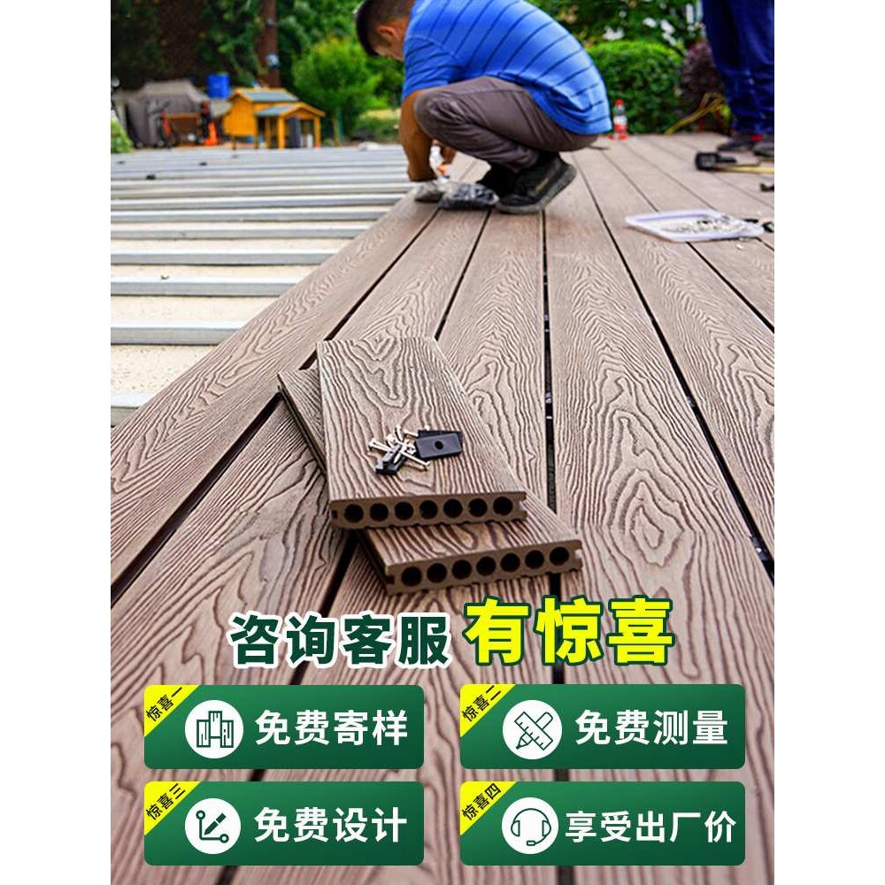 塑木地板户外防腐木露台地面铺设庭院室外菠萝格实心竹木无缝地板