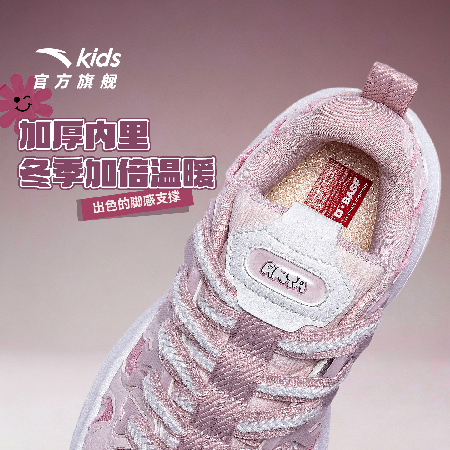 布朗尼丨安踏儿童运动鞋女大童鞋2025冬季新款增高厚底鞋老爹鞋