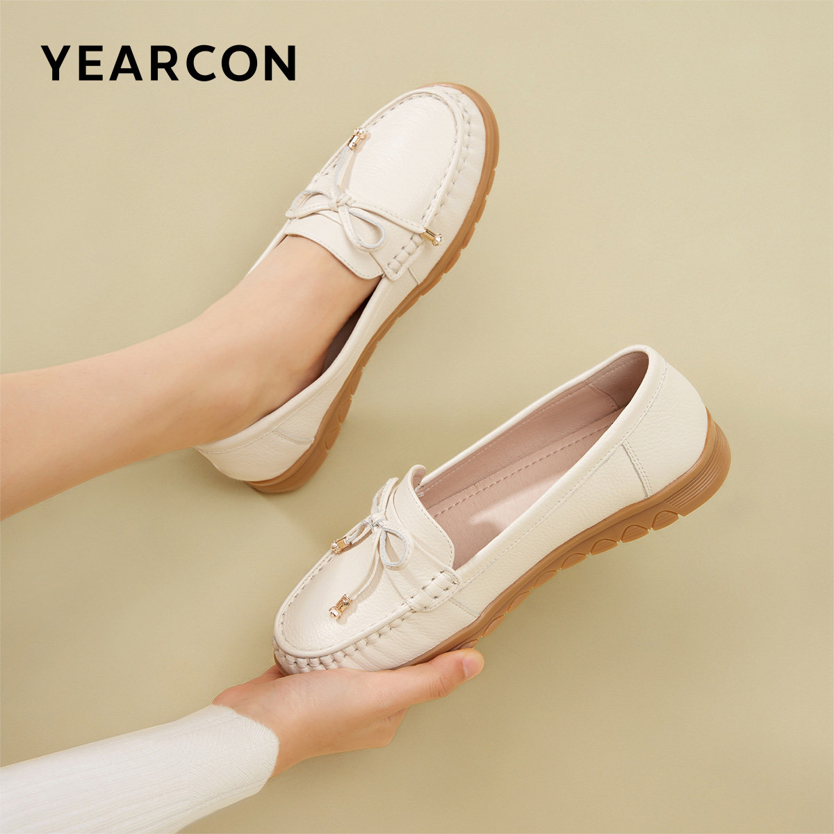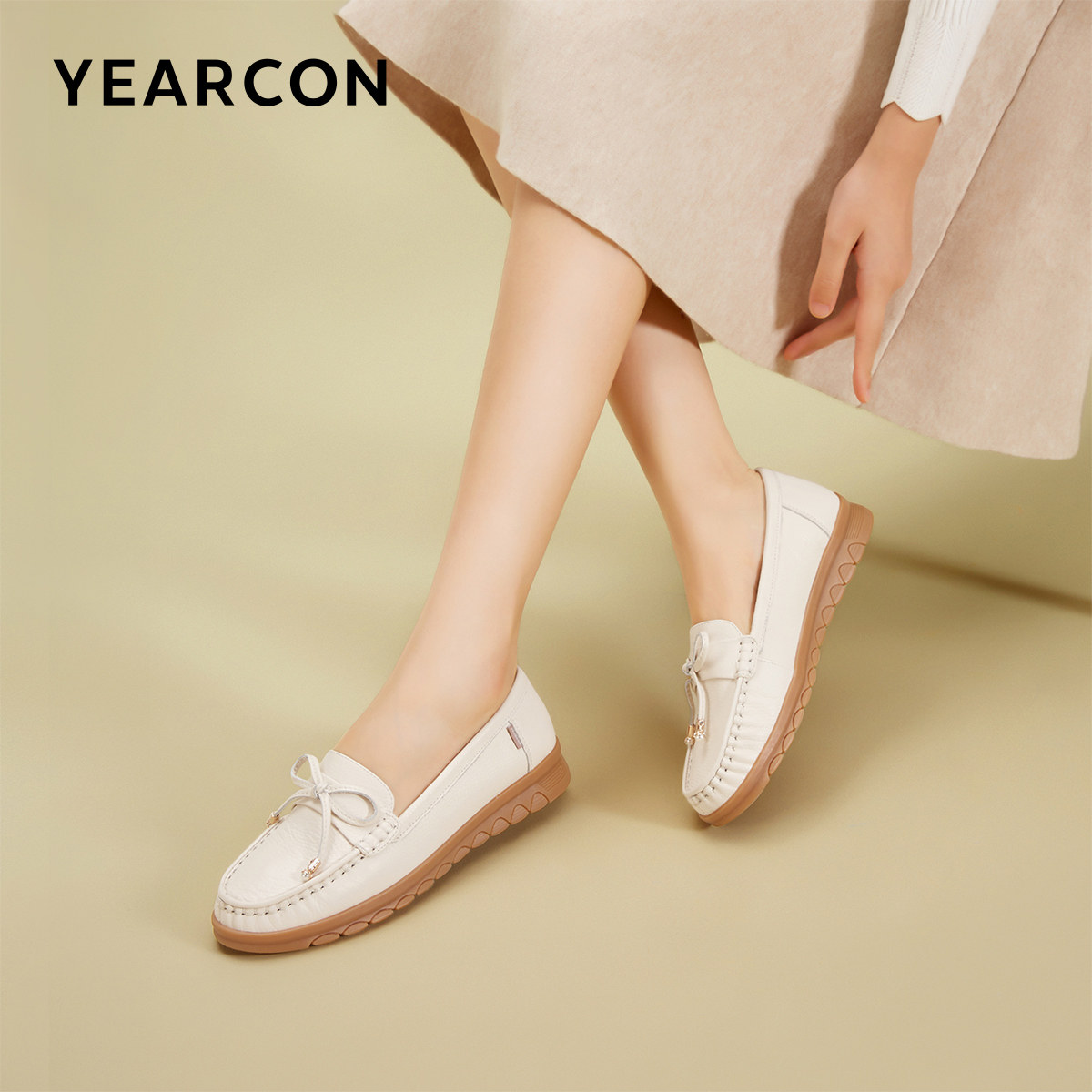 意尔康女鞋春秋真皮乐福鞋平底休闲护士鞋中老年妈妈鞋豆豆鞋软底