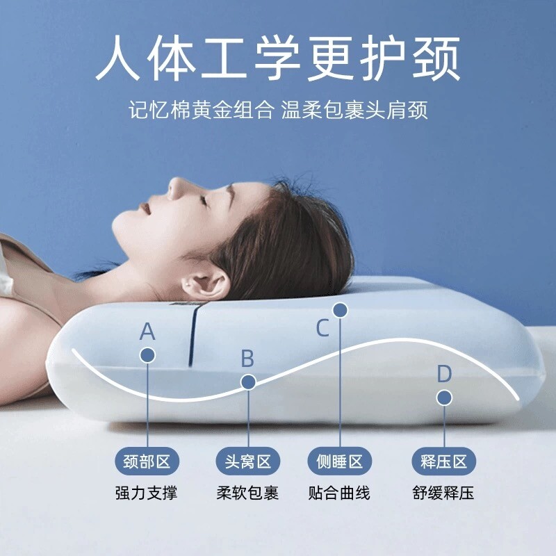 水星家纺人体工学枕头记忆棉深睡颈椎枕芯枕套成人礼盒辅助睡眠