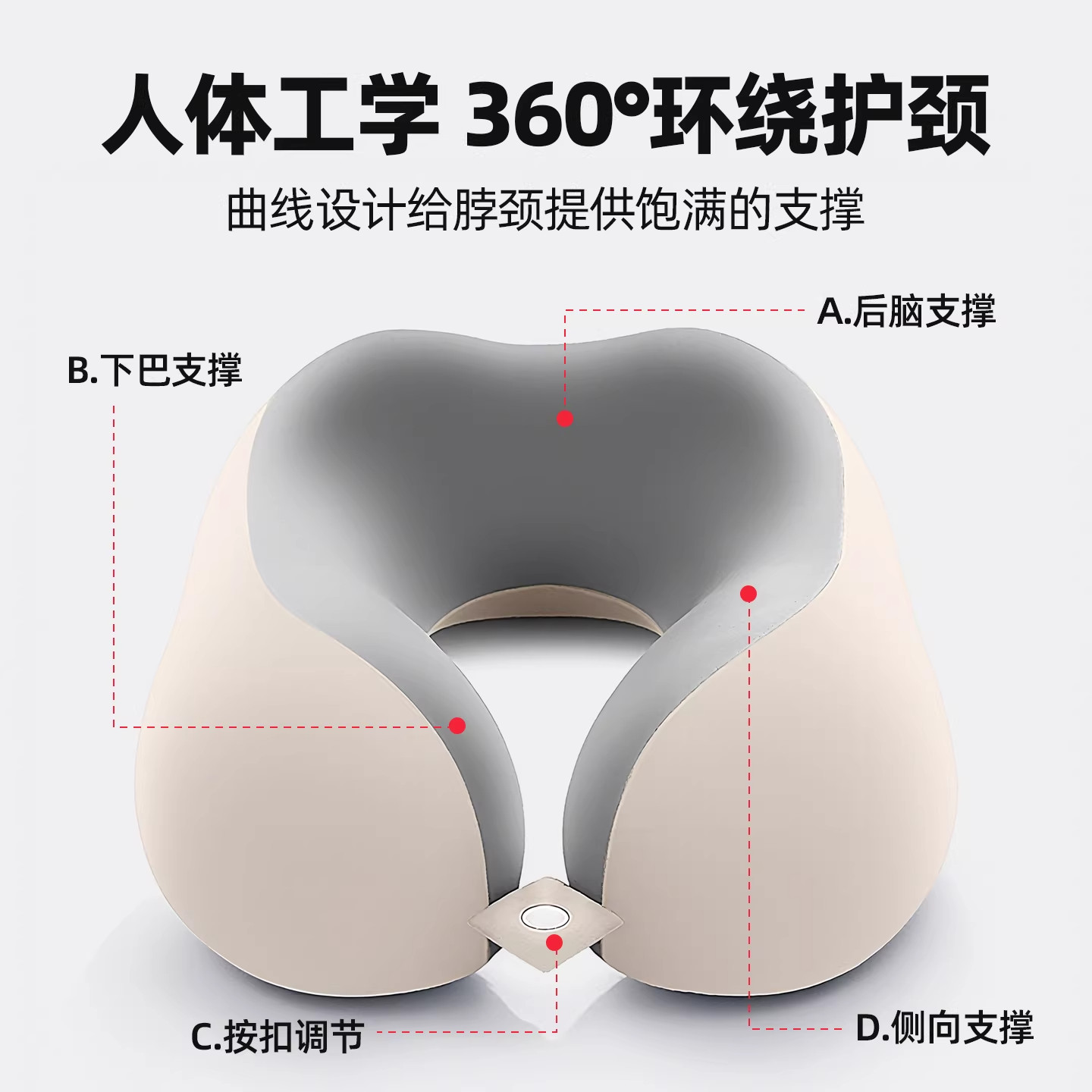 自此间U型枕可调节护颈飞机旅行汽车充气便携脖枕双层颈椎U形颈枕