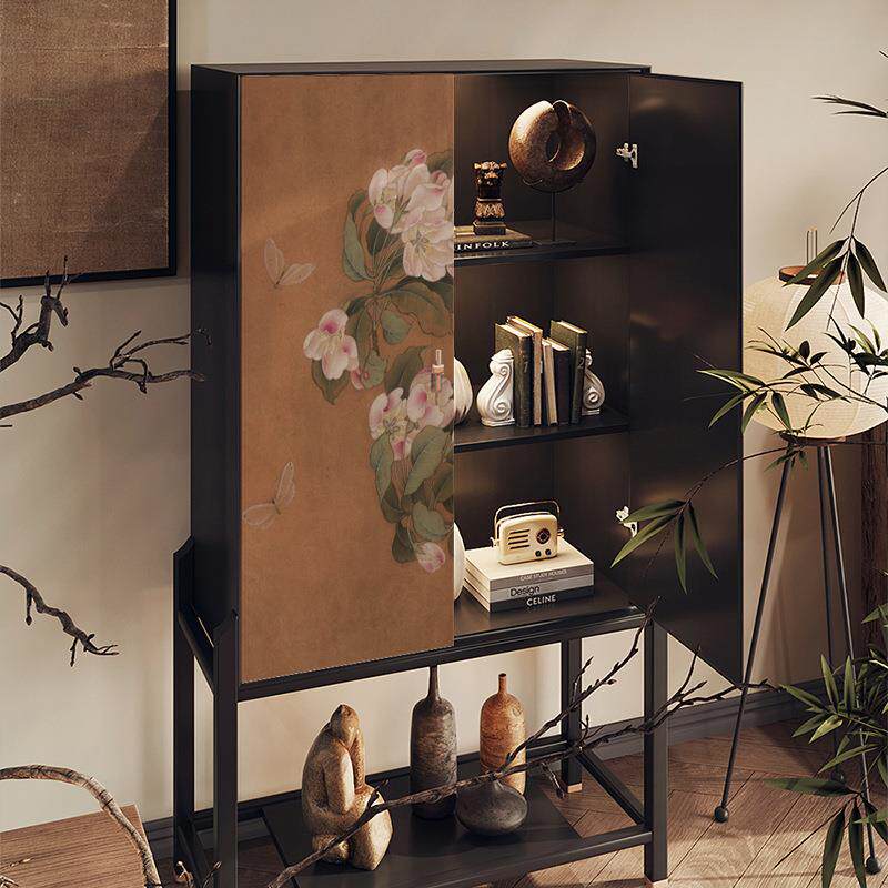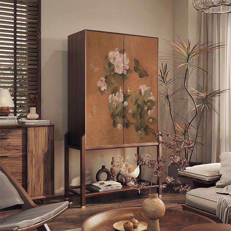新中式复古花卉实木斗柜家用餐边柜客厅收纳装饰柜卧室储物边柜