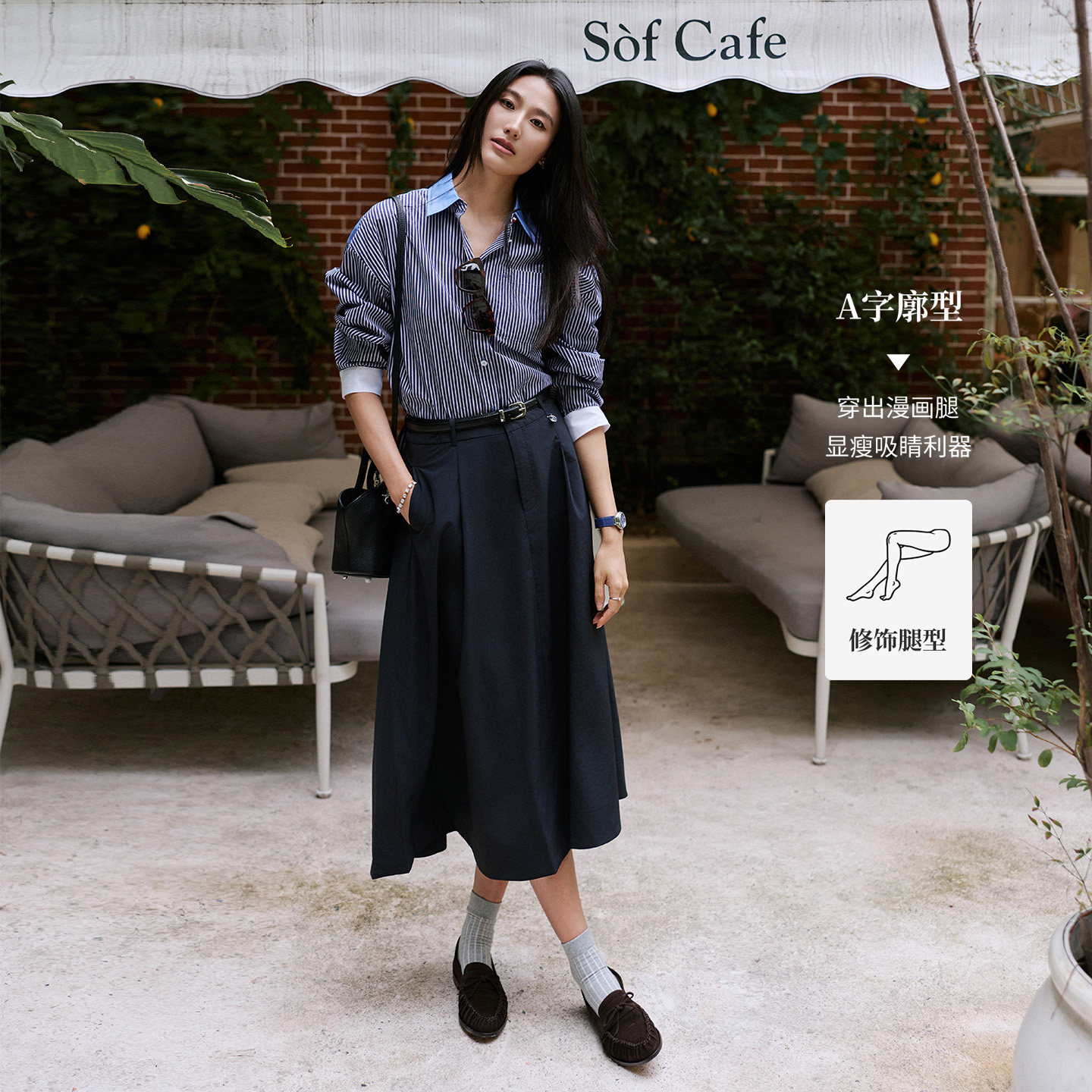 LIMONN |秋冬多颜色经典高腰显腿长A字百褶半身裙长裙