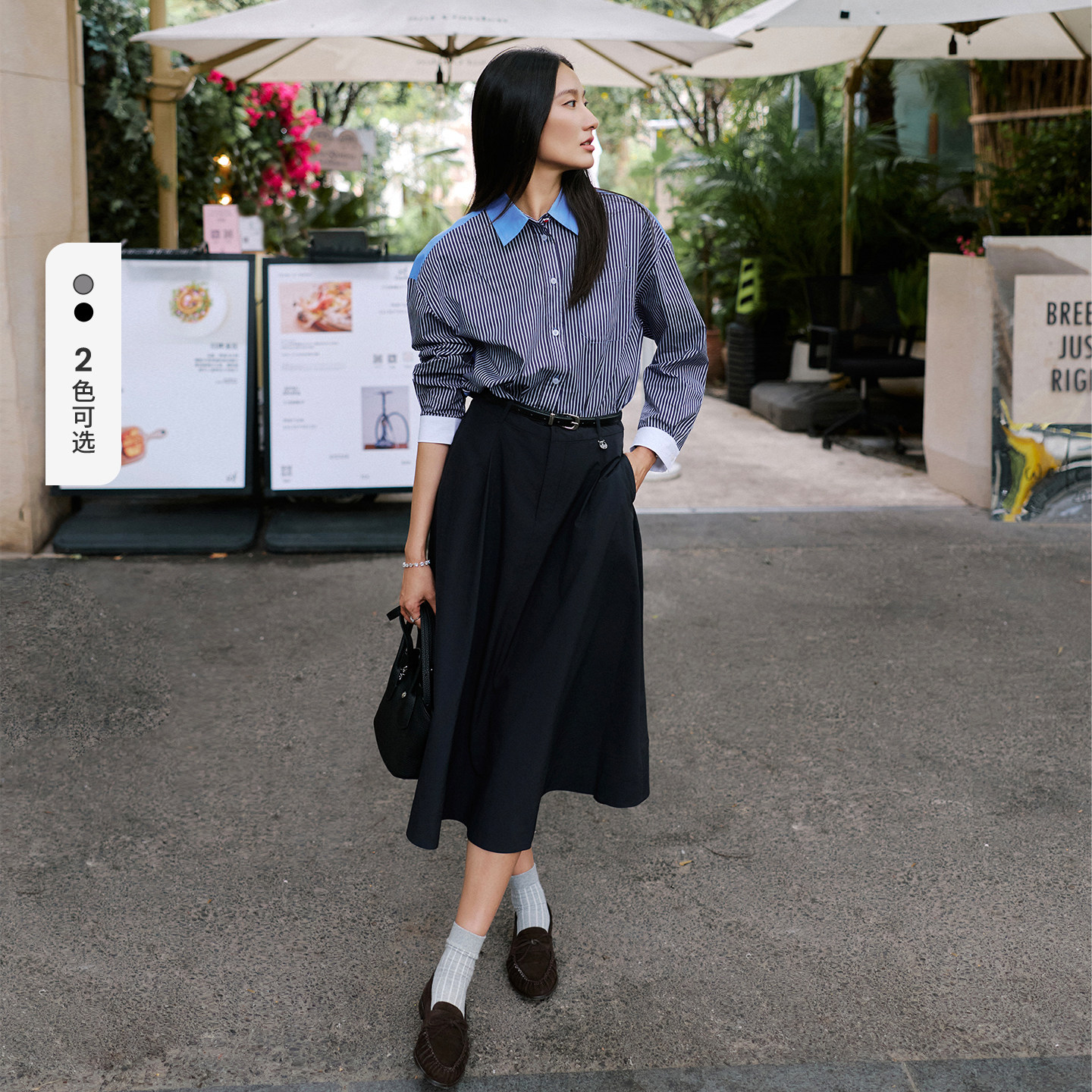 商场同款森马半身裙女磨毛纯棉长裙2025秋新款纯色伞裙百搭20002