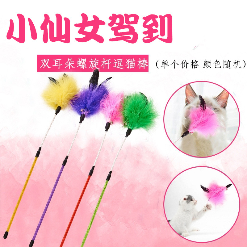 厂家直销加长款钢丝羽毛逗猫棒耐抓训猫逗猫杆子宠物猫猫铃铛玩具