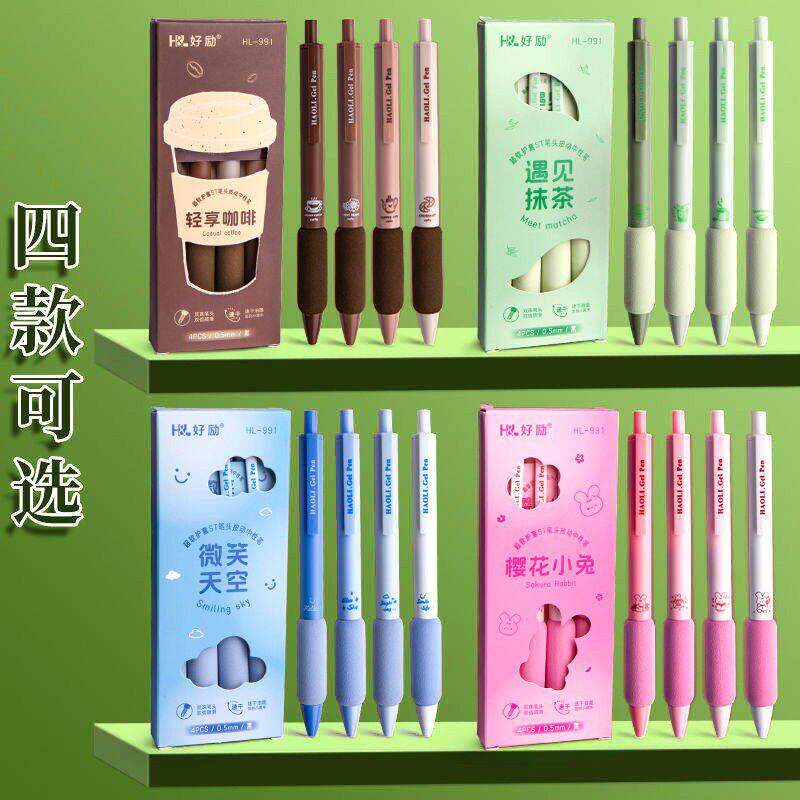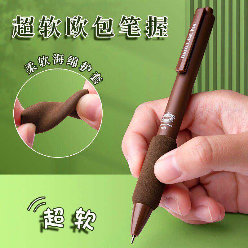 好励咖啡欧包笔高颜值学生刷题笔按动中性笔0.5黑笔水笔签字笔