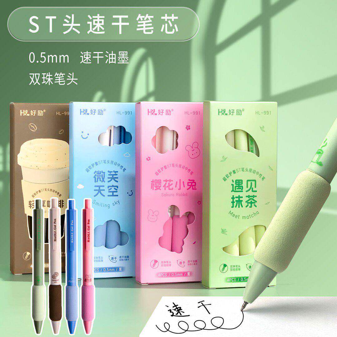MENIU米扭中性笔听海拾贝小滴笔高颜值大容量学生专用刷题考试笔