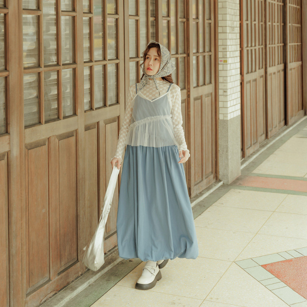 QUEENSHOP 2026春夏新品女装背心荷叶两件式气球连衣裙01087162