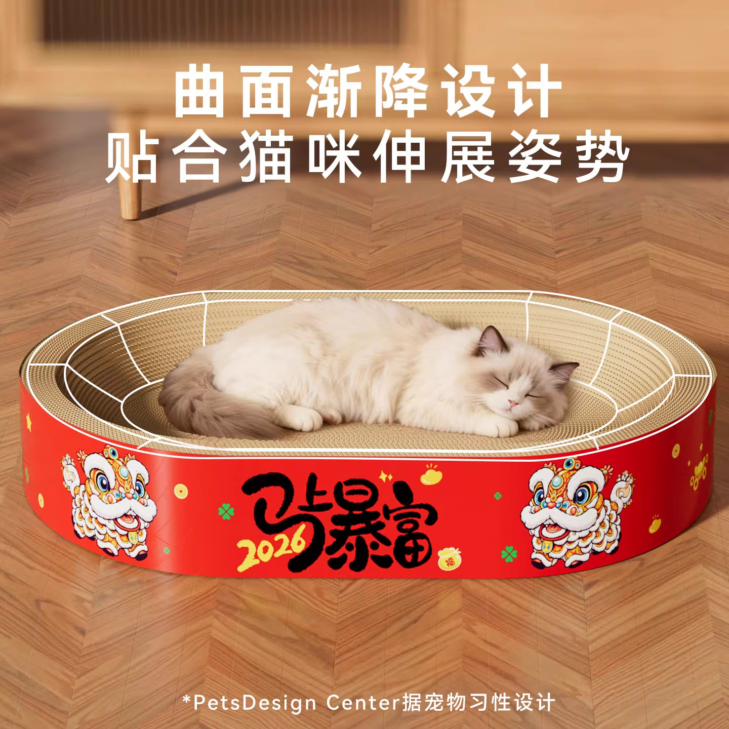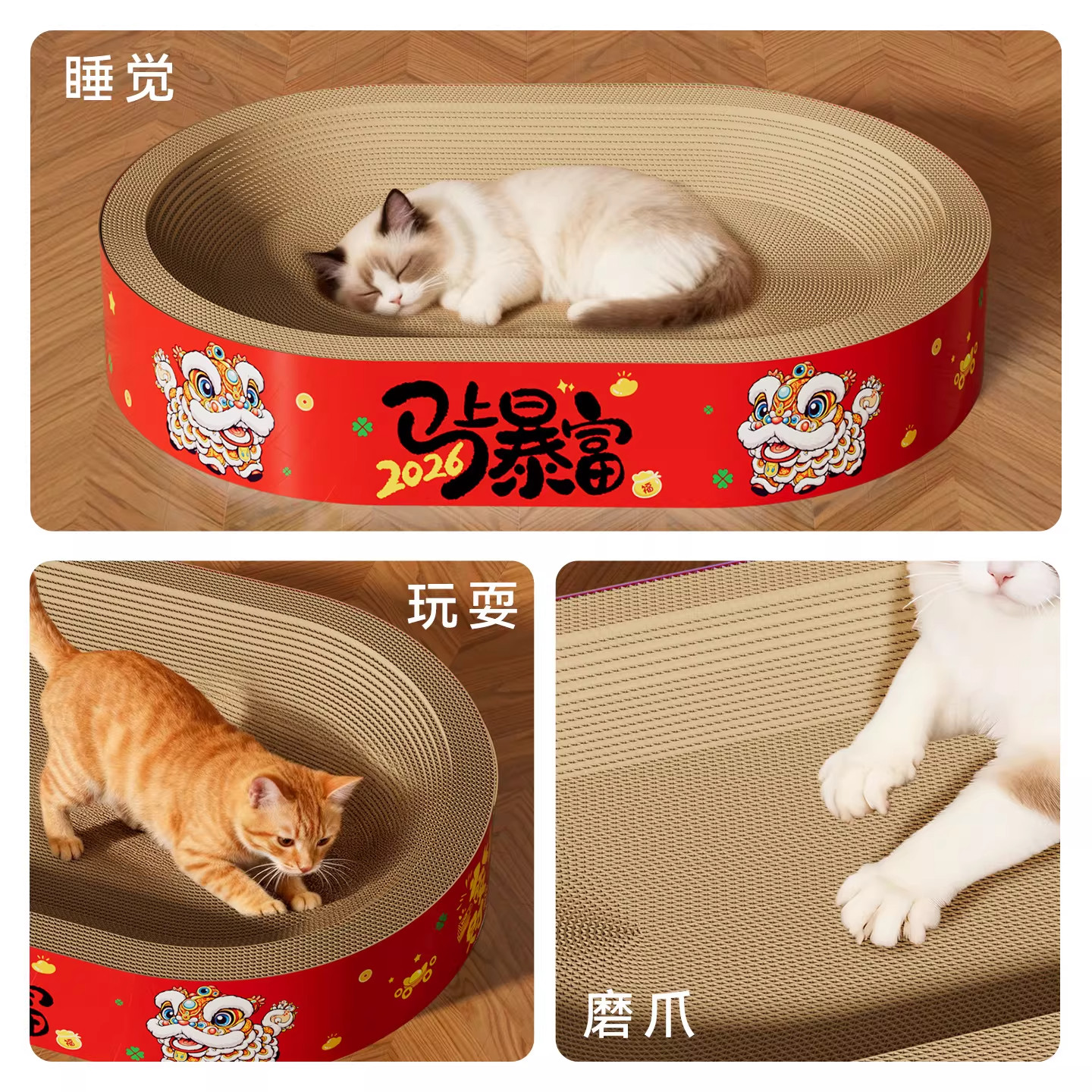 瓦楞纸猫抓板猫窝四季通用椭圆耐抓不掉屑高密度猫爪板马年新年款