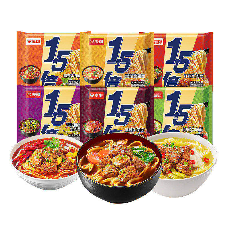 今麦郎1.5倍红烧牛肉面方便面速食泡椒麻辣袋装泡面整箱拉面酸辣