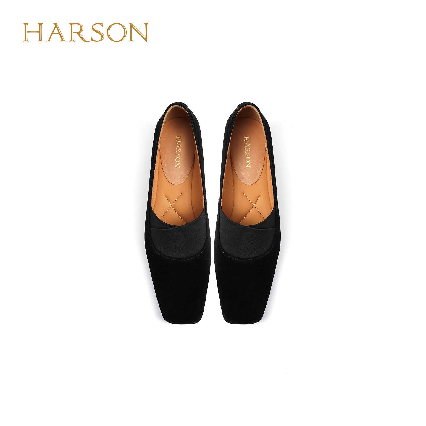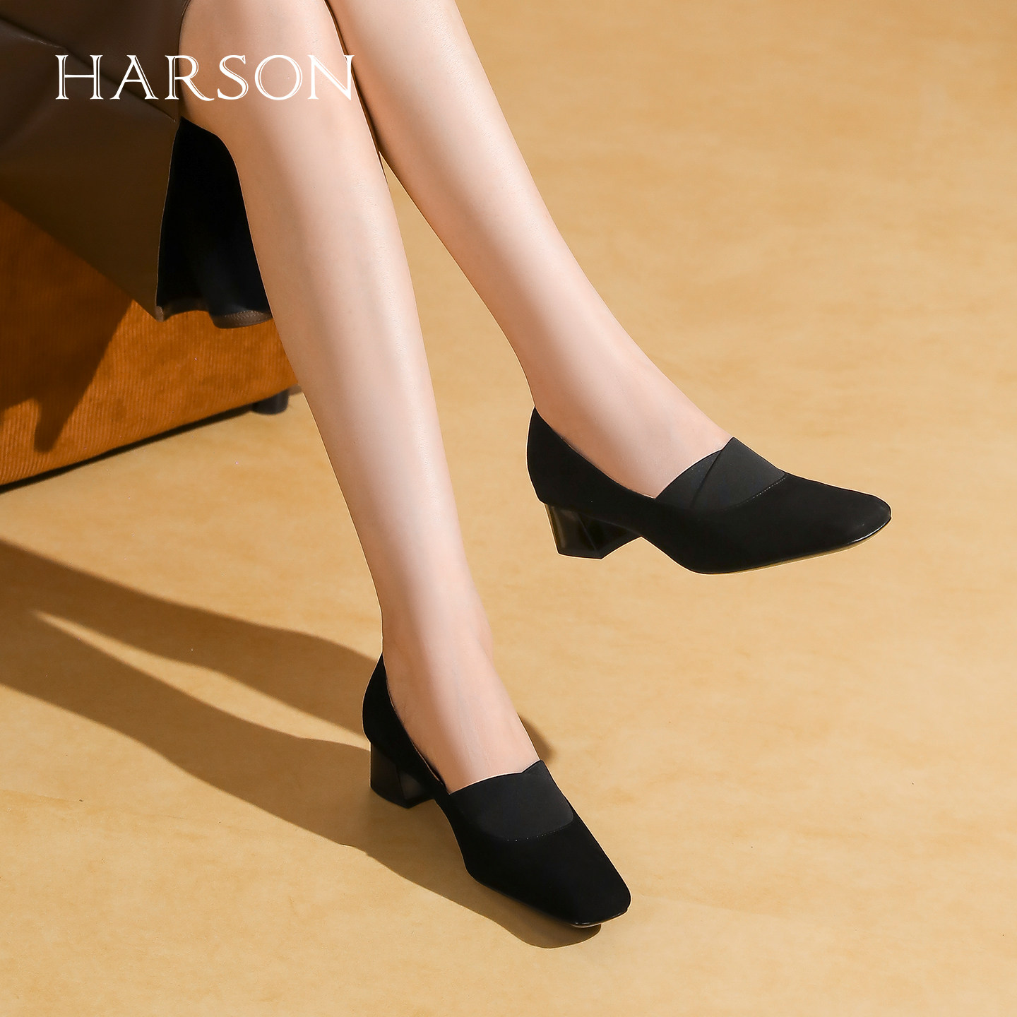 哈森深口单鞋女新款粗跟一脚蹬松紧口绒面女鞋 HWL240133