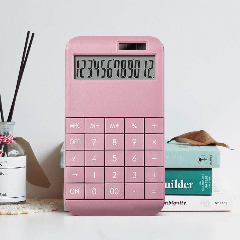 计算器,高望办公室专用的真正的太阳能12位大屏幕显示器,胭脂红色彩色电脑
