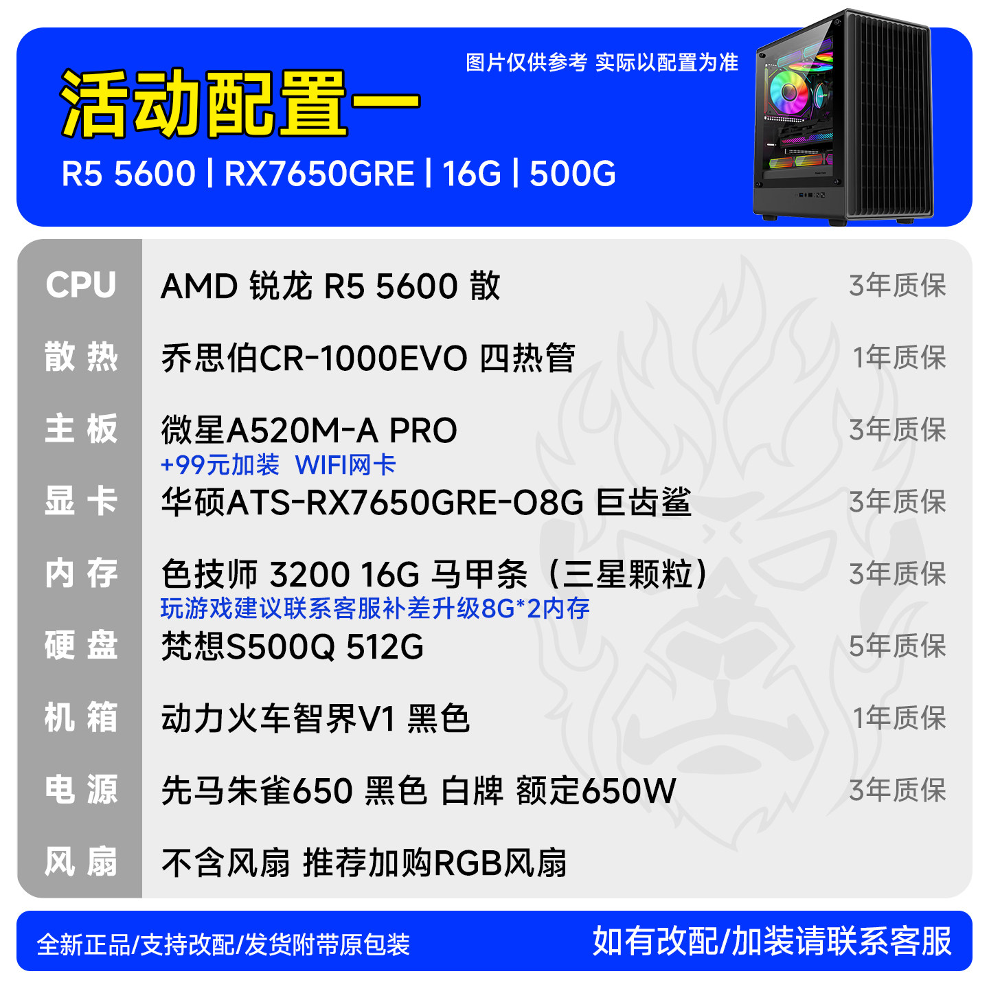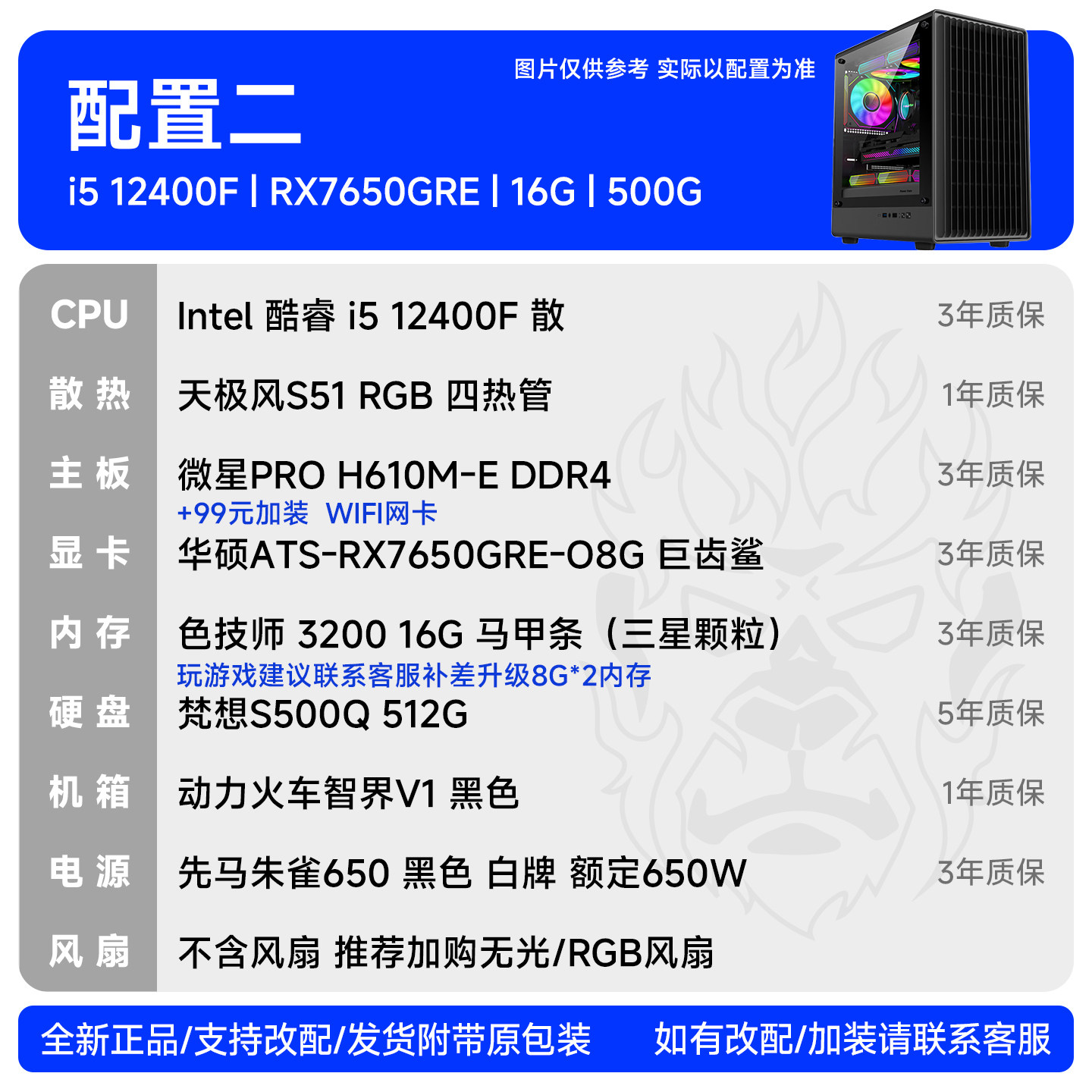 华硕ATS-RX7650GRE-O8G游戏台式diy组装电脑主机装机猿自营电竞馆