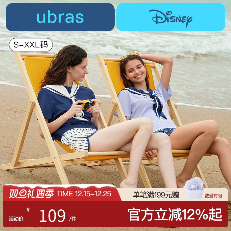 ubras睡衣女生迪士尼联名唐老鸭海军风短袖短裤情侣套装男新款