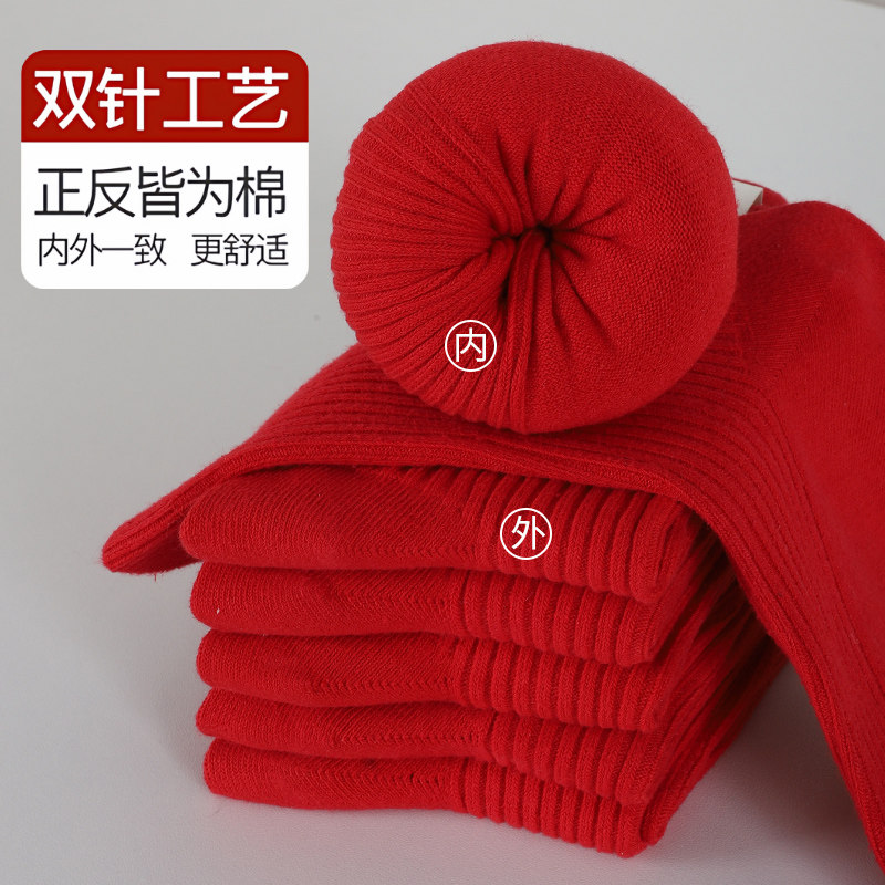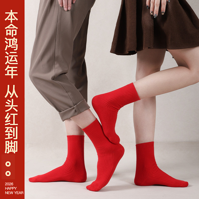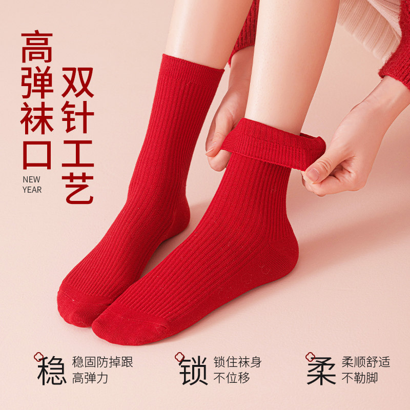 红袜子本命年袜男女秋冬款马年大红色情侣结婚喜袜袜子新疆棉优质