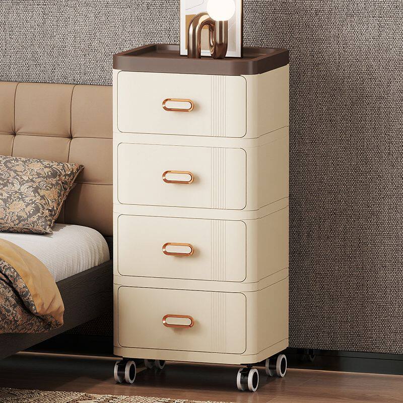 抽屉式收纳柜多层塑料家用杂物整理储物柜可移动床头柜带轮简约