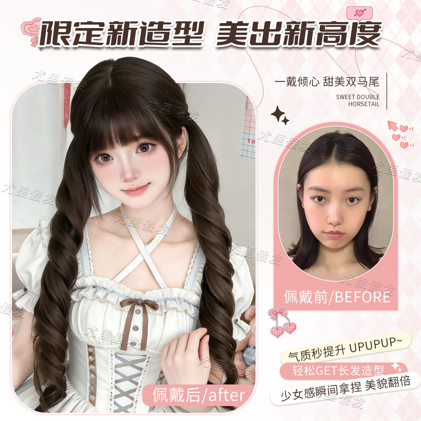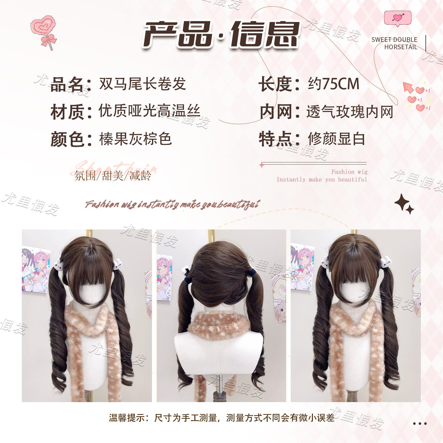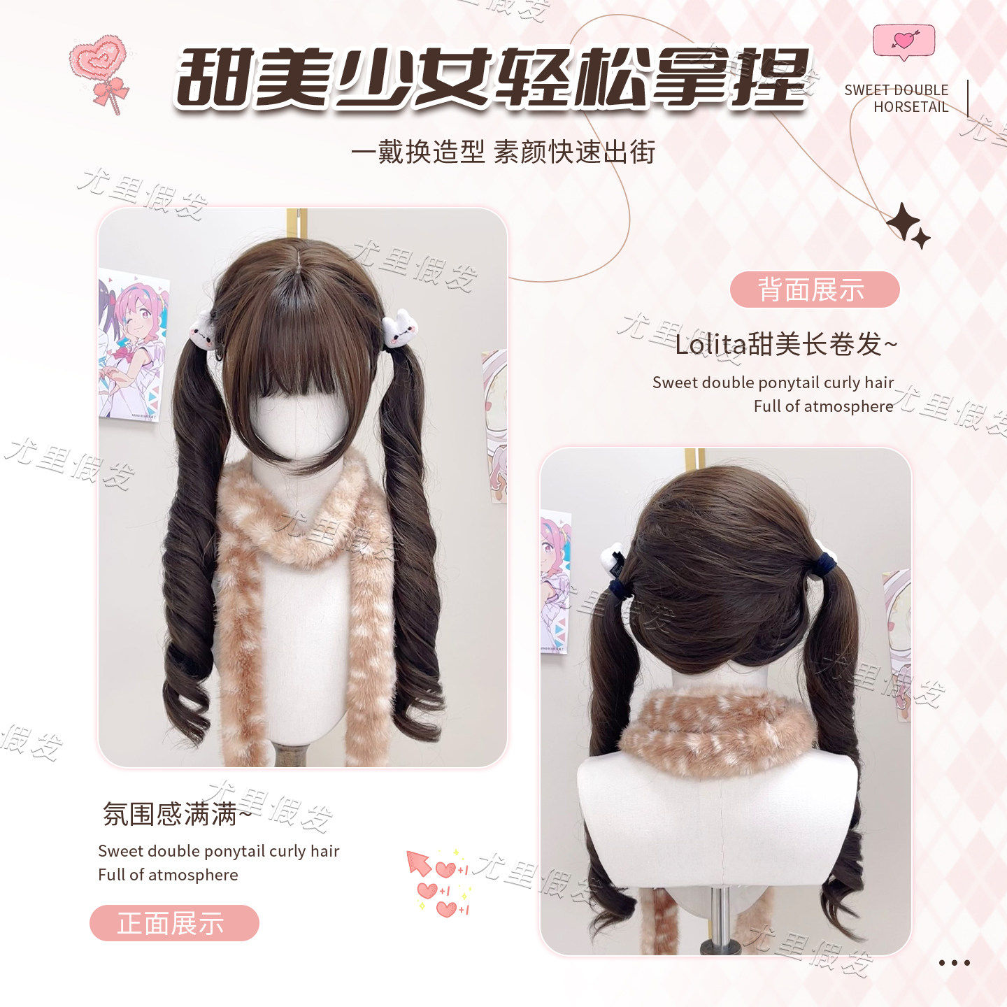 【巴洛克甜心】喵喵岛假发女萝莉虎口夹Lolita双马尾长卷发假发套