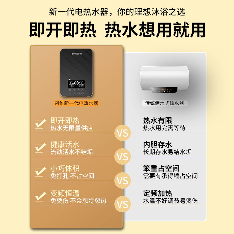 创维即热式电热水器电家用卫生间淋浴速热式小型租房洗澡机免储水