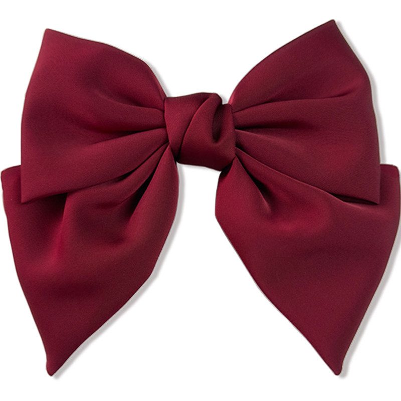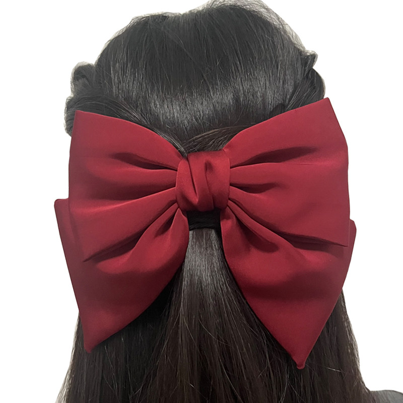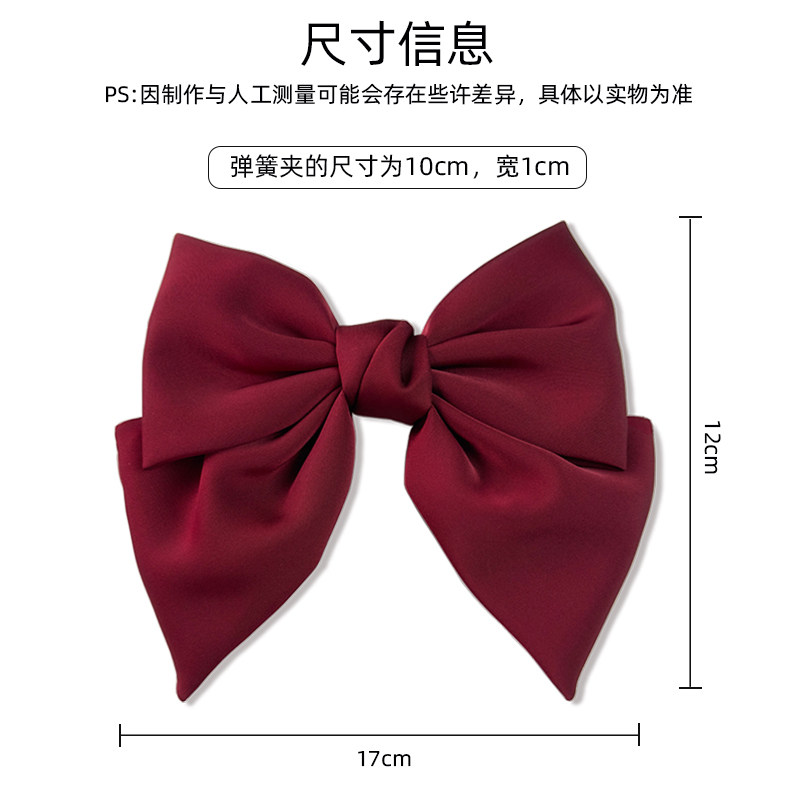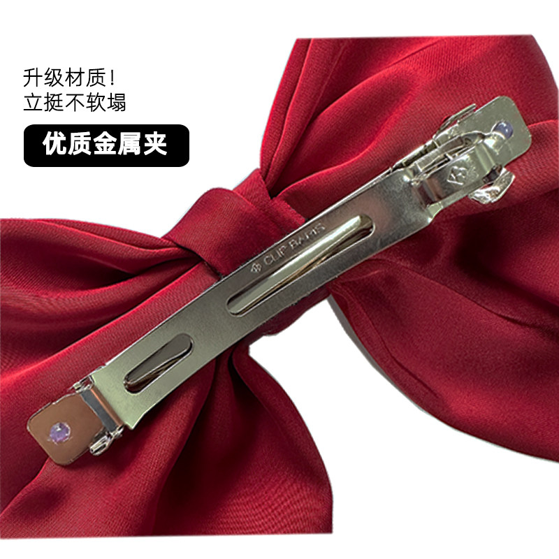酒红色蝴蝶结发夹缎面发饰发卡订婚头饰法式女童儿童鸭嘴夹子弹簧