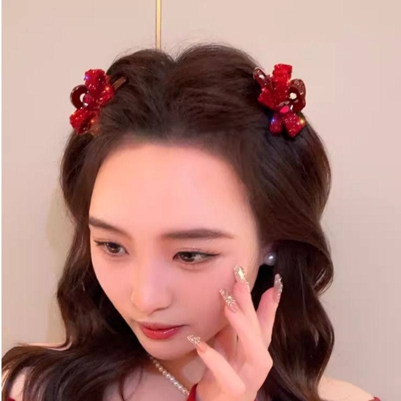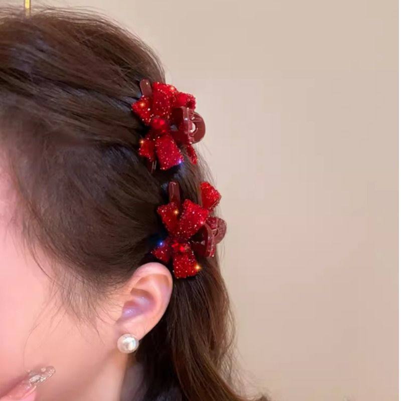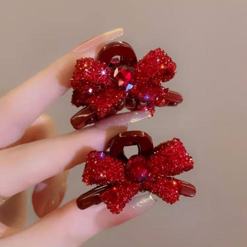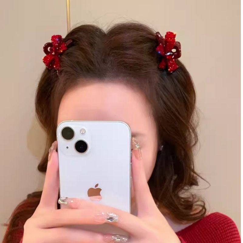 高级感红色蝴蝶结水钻小抓夹女简约气质刘海夹侧边碎发夹子发饰