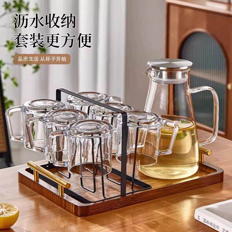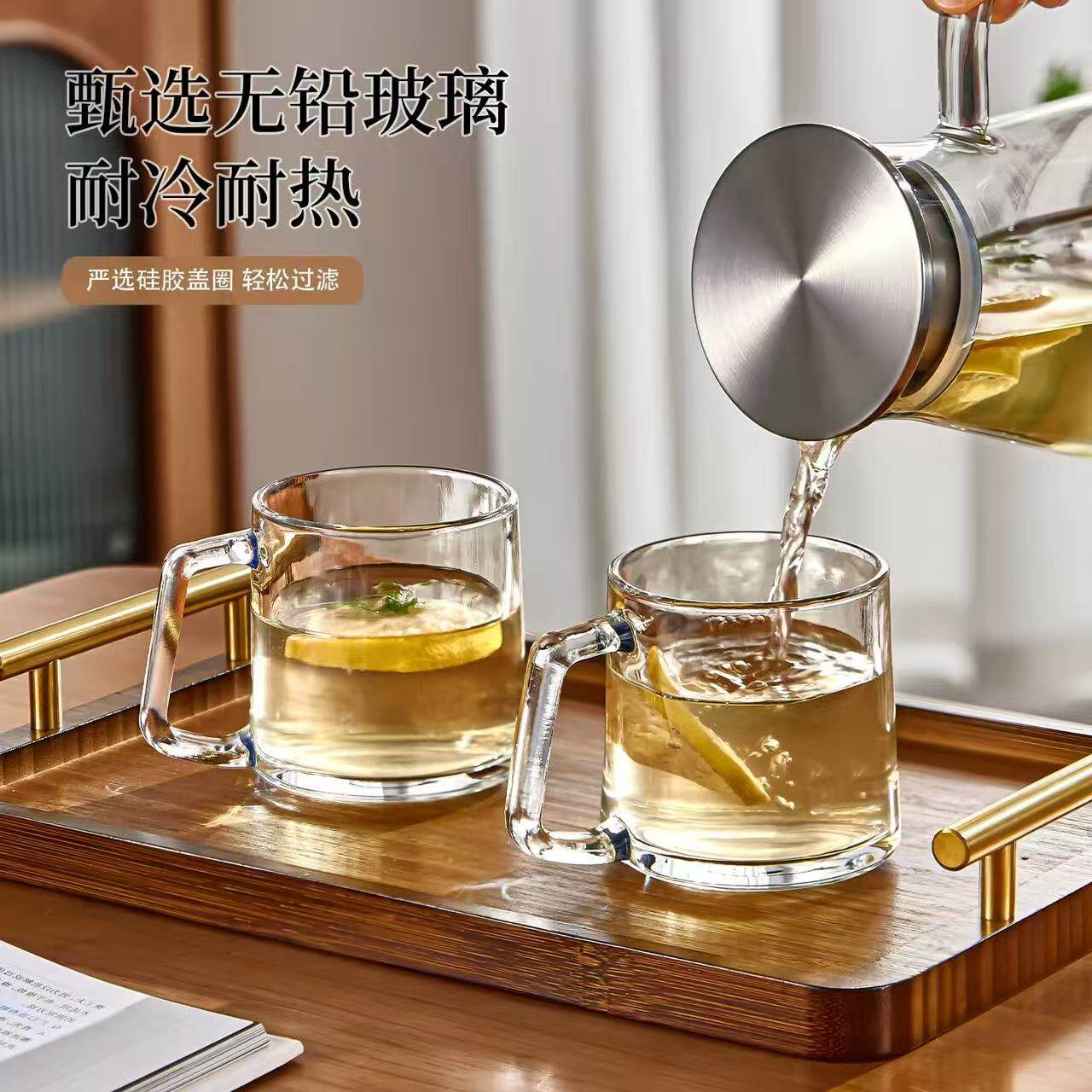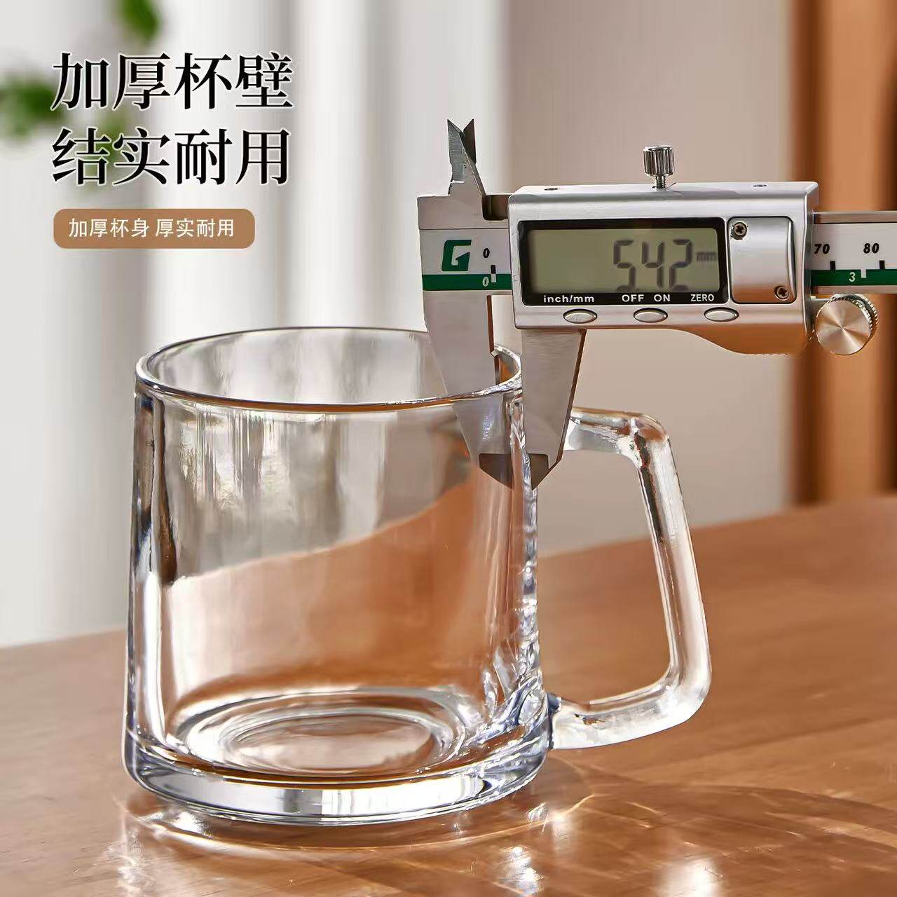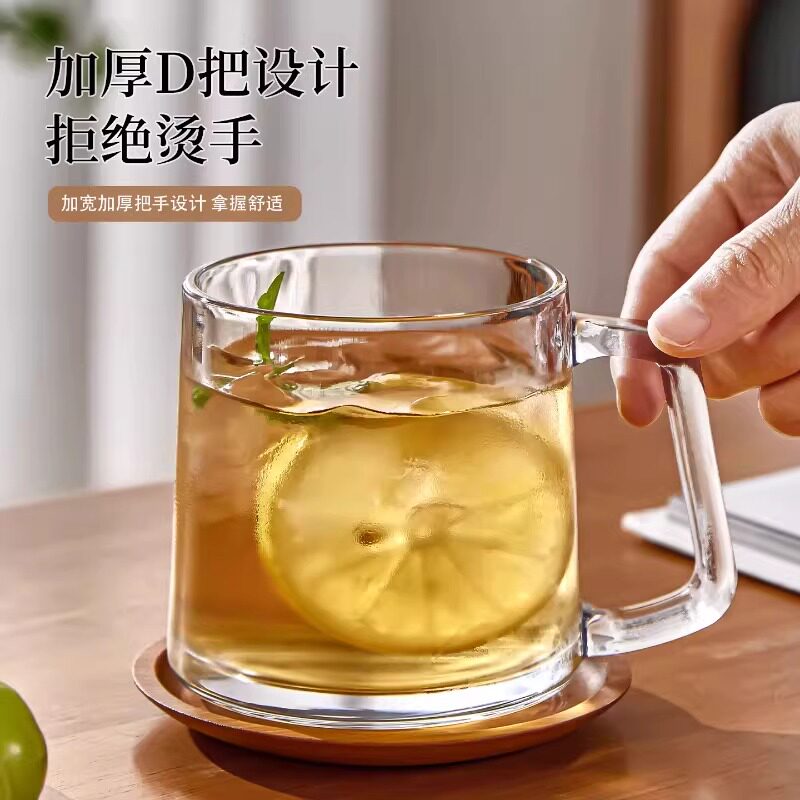 青苹果玻璃杯带把手耐高温家用待客杯子咖啡杯茶杯办公室简约水杯