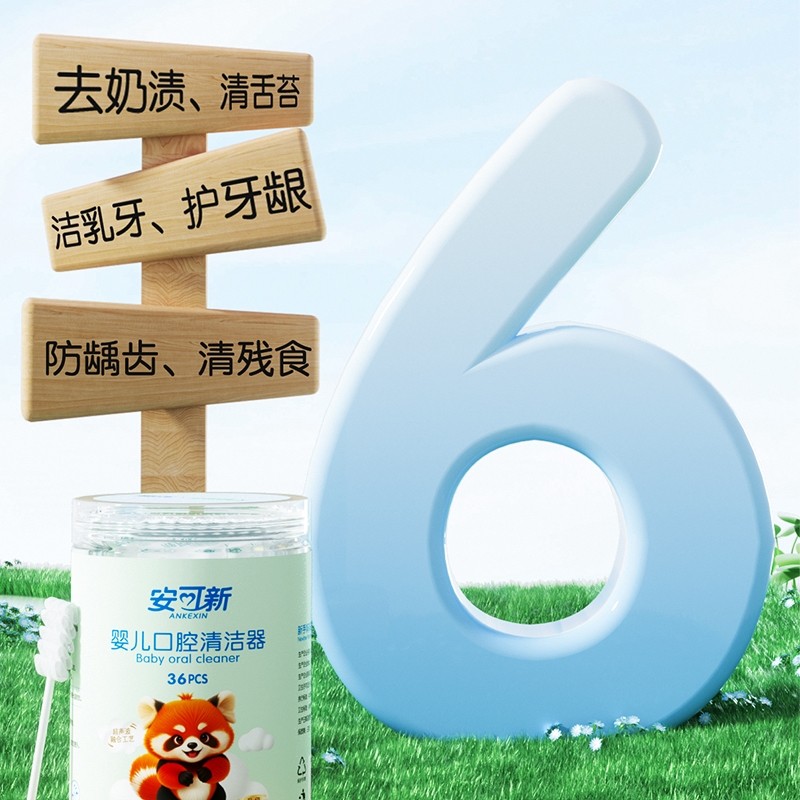安可新一次性牙刷双排线婴幼儿专用舌苔清洁器去奶渍纱布棉棒