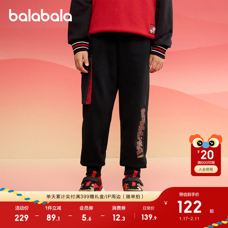 巴拉巴拉童装男童裤子儿童加绒长裤2026春秋装大童拜年红色拜年服