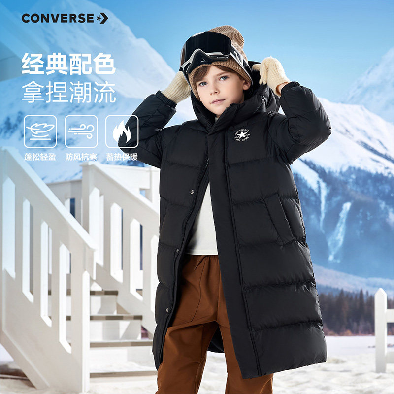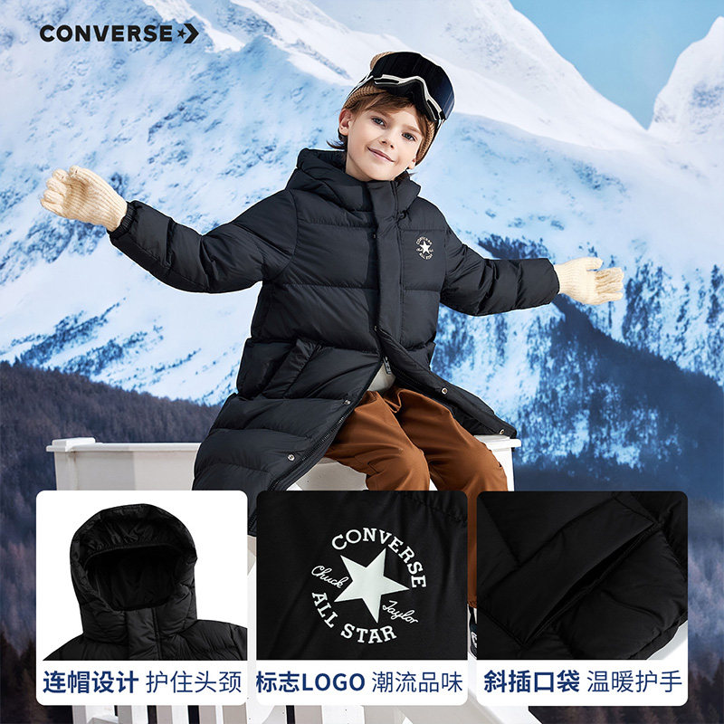 匡威童装男童羽绒服2025冬季新款长款滑雪旅游外套保暖防风加厚