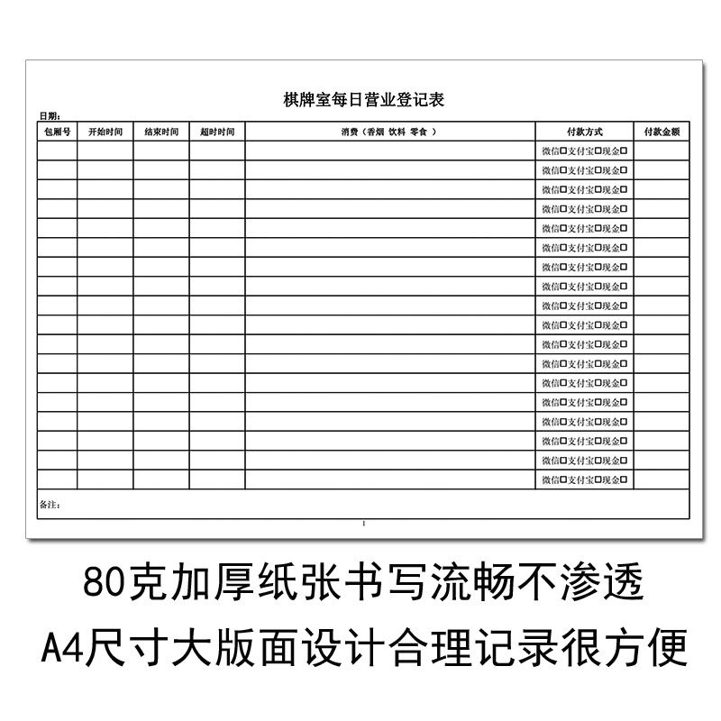 棋牌室营业登记本酒店宾馆沐足场所麻将馆开台记录表棋牌室记账本