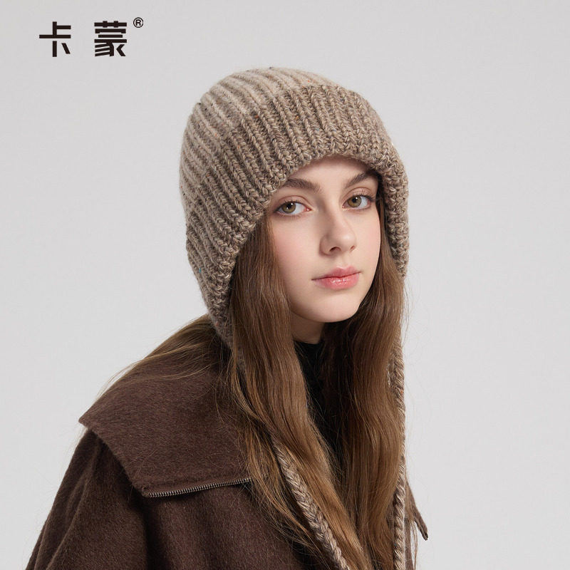 卡蒙新款帽子女士冬加厚保暖针织帽时尚洋气防风防寒护耳帽毛线帽