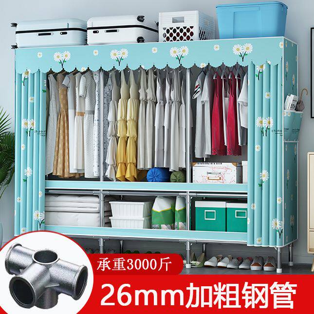 b全钢管布衣柜家用卧室简易衣柜出租房组装挂衣橱