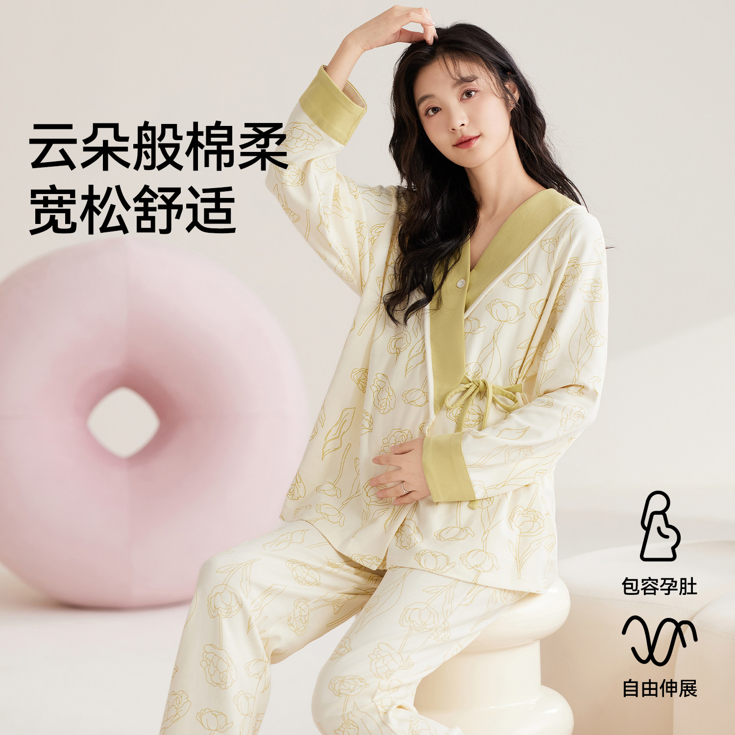 都市丽人月子服哺乳喂奶睡衣纯棉带胸垫孕妇产妇家居服套装薄款