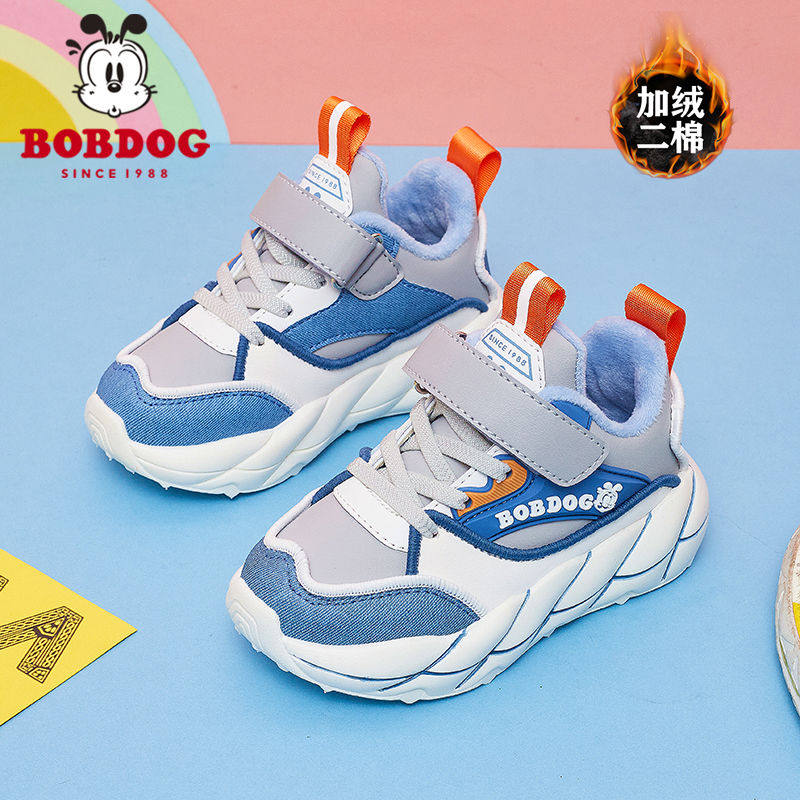 巴布豆男童运动鞋加绒保暖2025冬季新款抗寒二棉鞋男孩跑步鞋女童