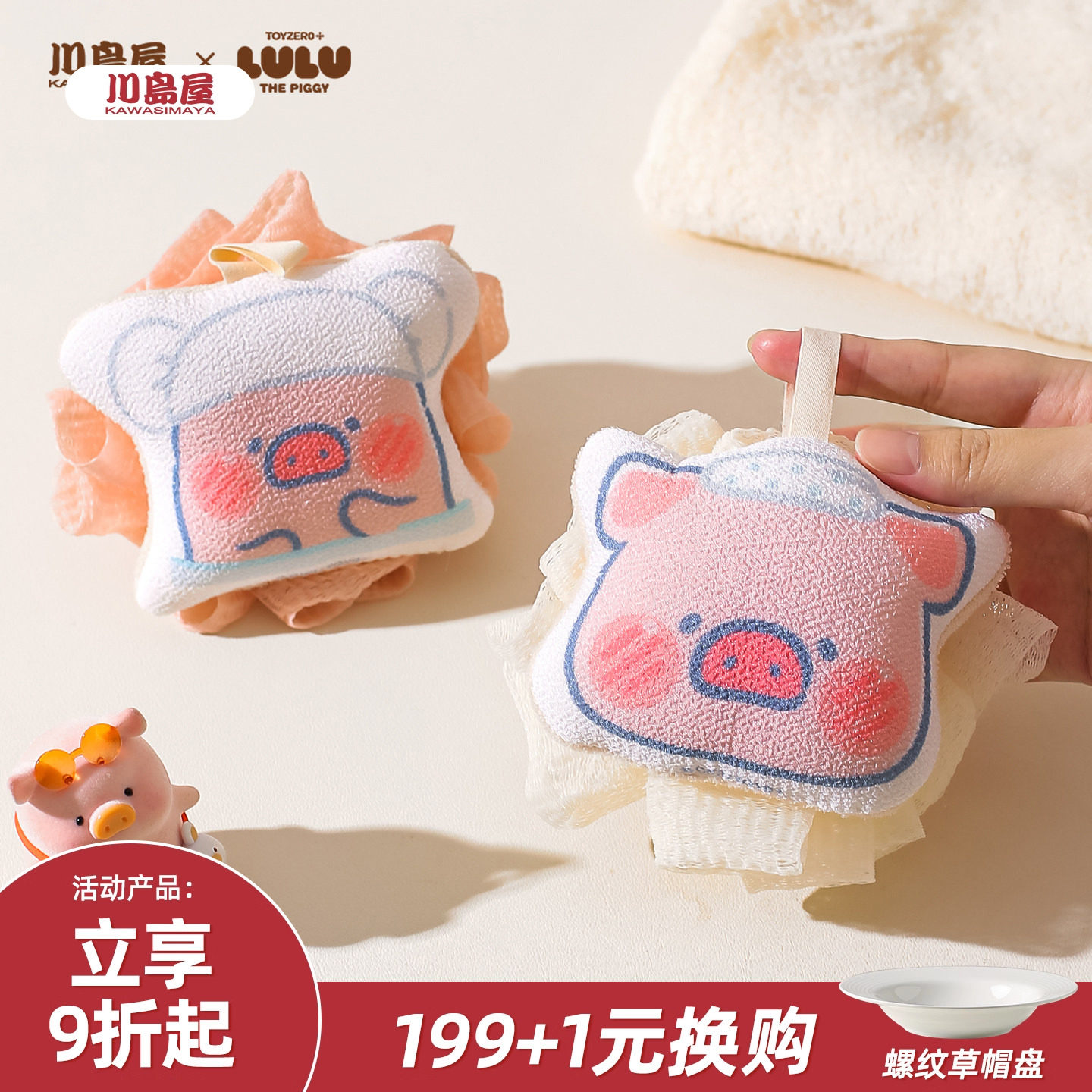 川岛屋&lulu猪联名 沐浴球高档不散超柔软搓澡两用儿童洗澡浴花球