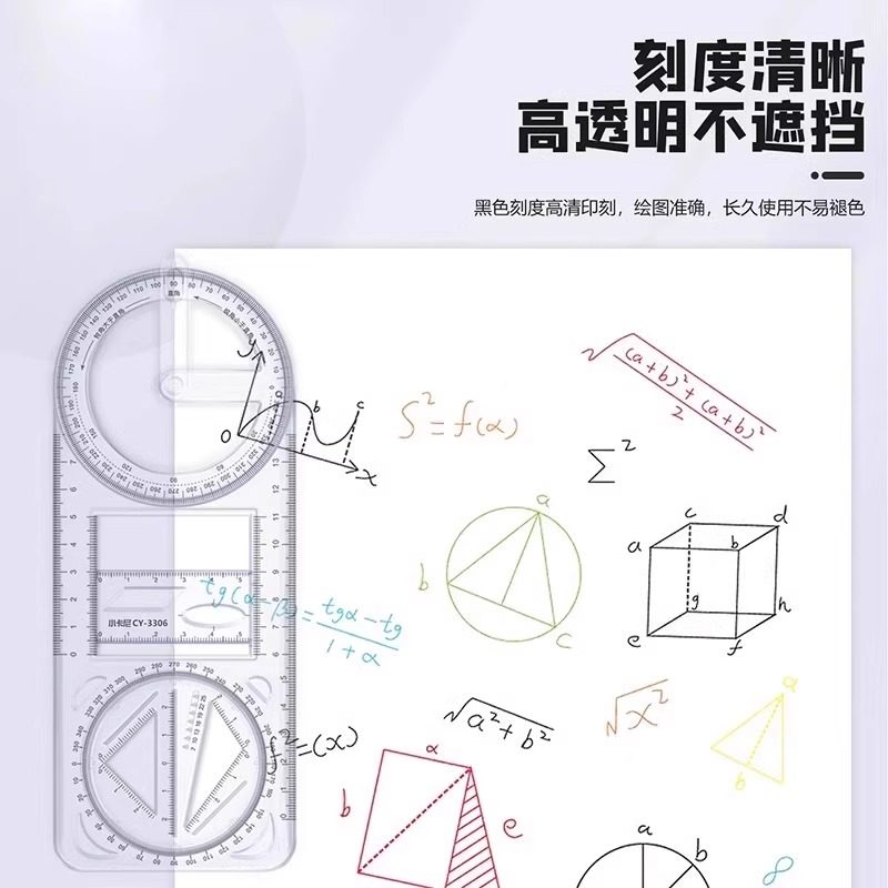 中小学多功能绘图尺子高中生可旋转数学函数几何图形尺套装三角尺