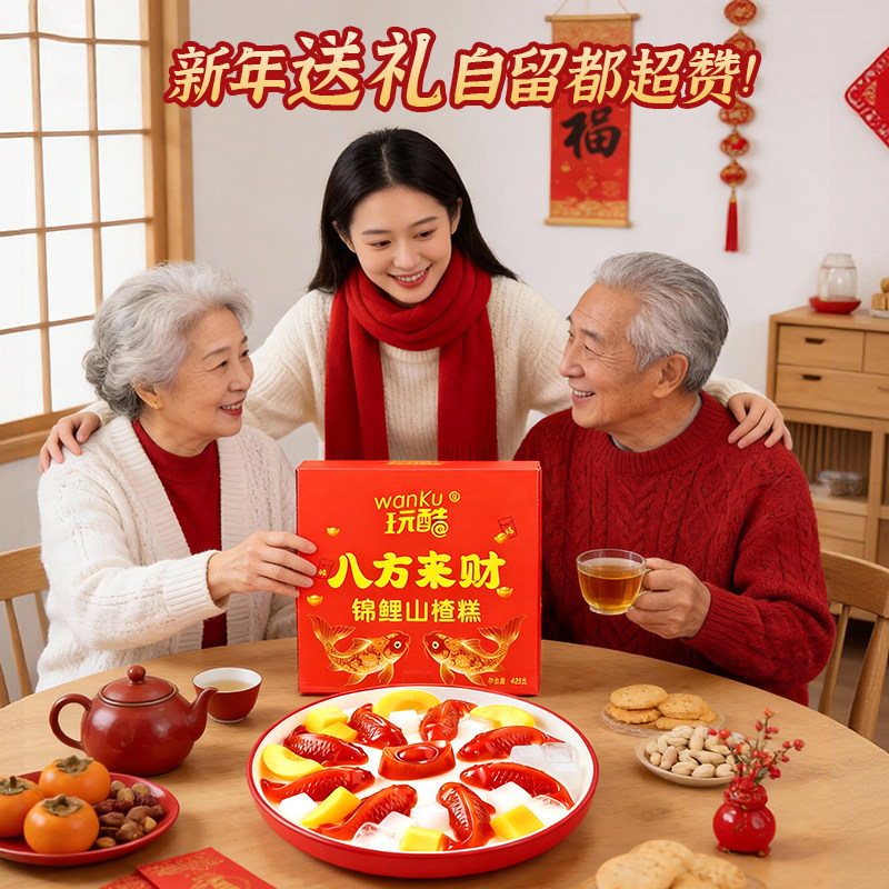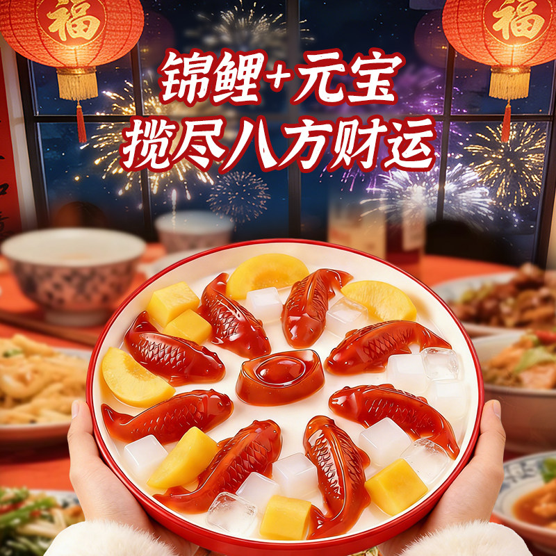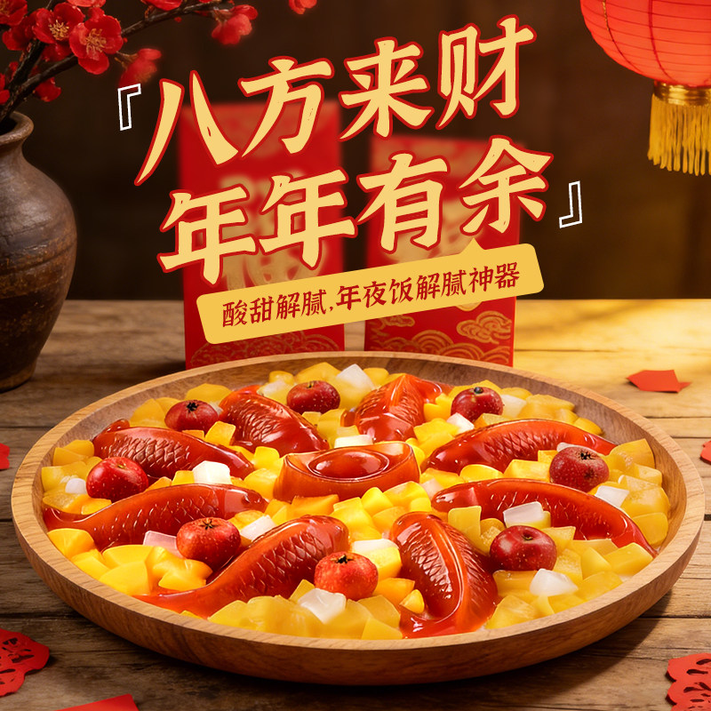 锦鲤山楂鱼八方来财山楂糕元宝鱼形年夜饭摆盘过年礼盒鲜果造型