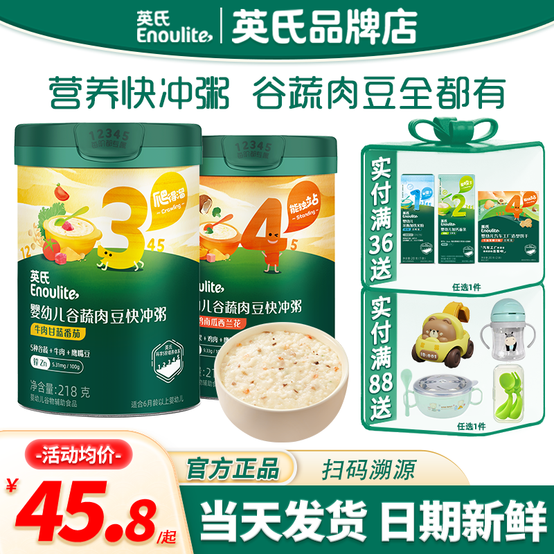 英氏快冲粥速食冲泡粥宝宝米粉婴儿辅食粥便携英式粥即食儿童米糊
